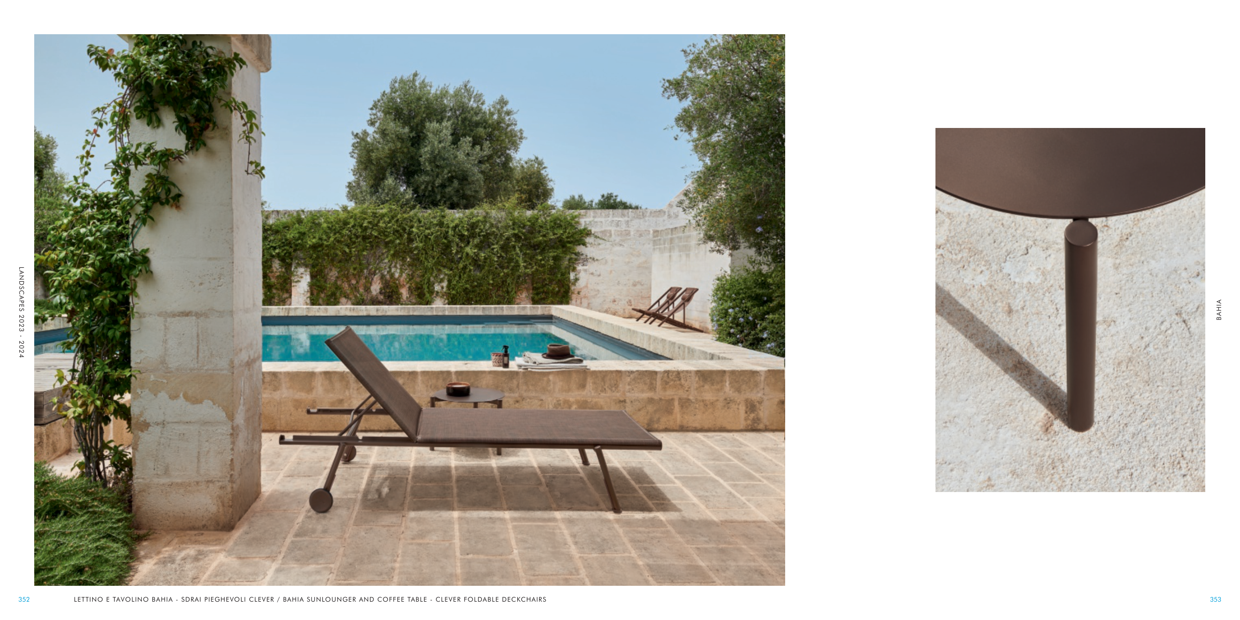 LETTINO E TAVOLINO BAHIA - SDRAI PIEGHEVOLI CLEVER / BAHIA SUNLOUNGER AND COFFEE TABLE - CLEVER FOLDABLE DECKCHAIRS