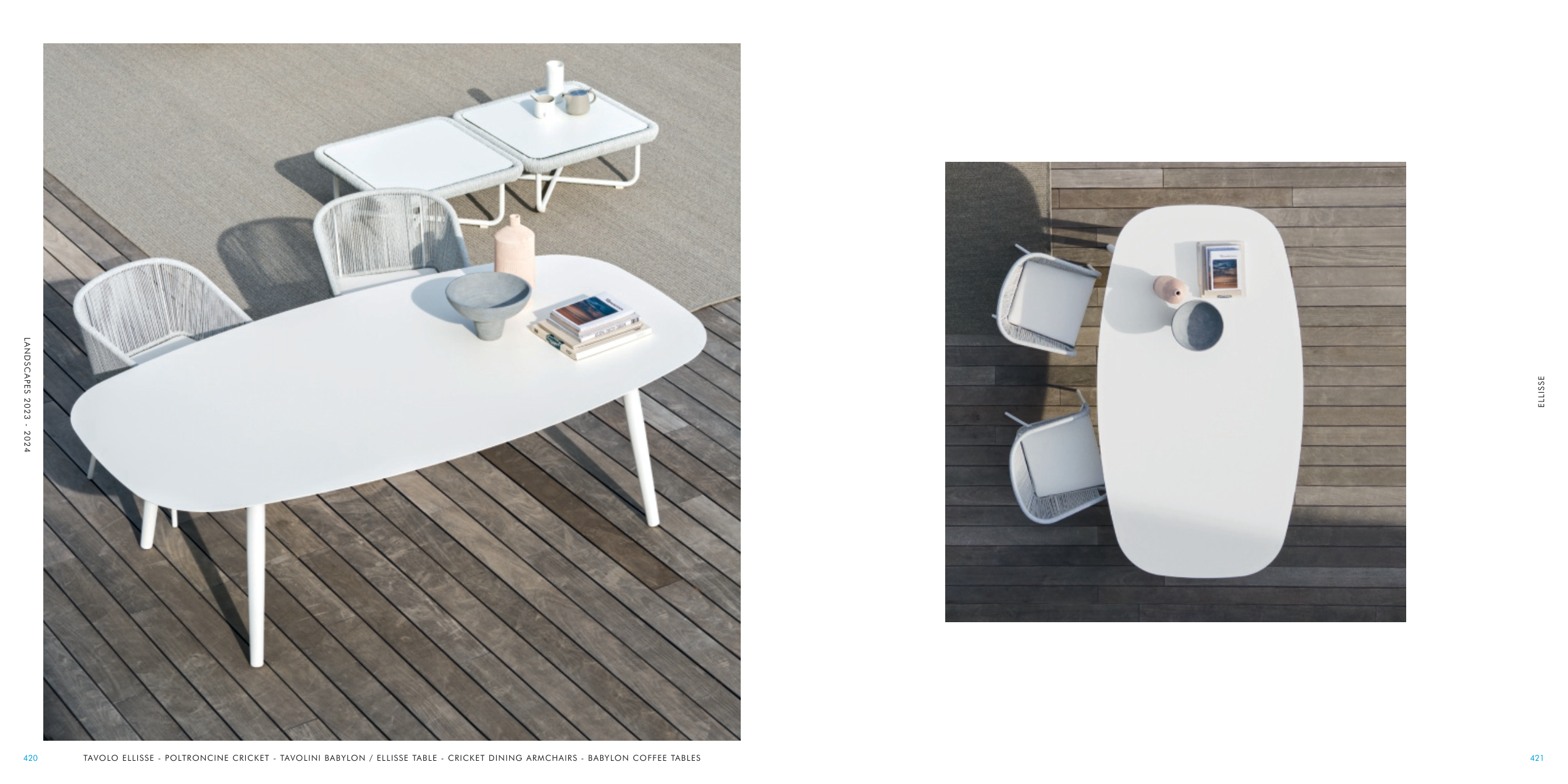 TAVOLO ELLISSE - POLTRONCINE CRICKET - TAVOLINI BABYLON / ELLISSE TABLE - CRICKET DINING ARMCHAIRS - BABYLON COFFEE TABLES