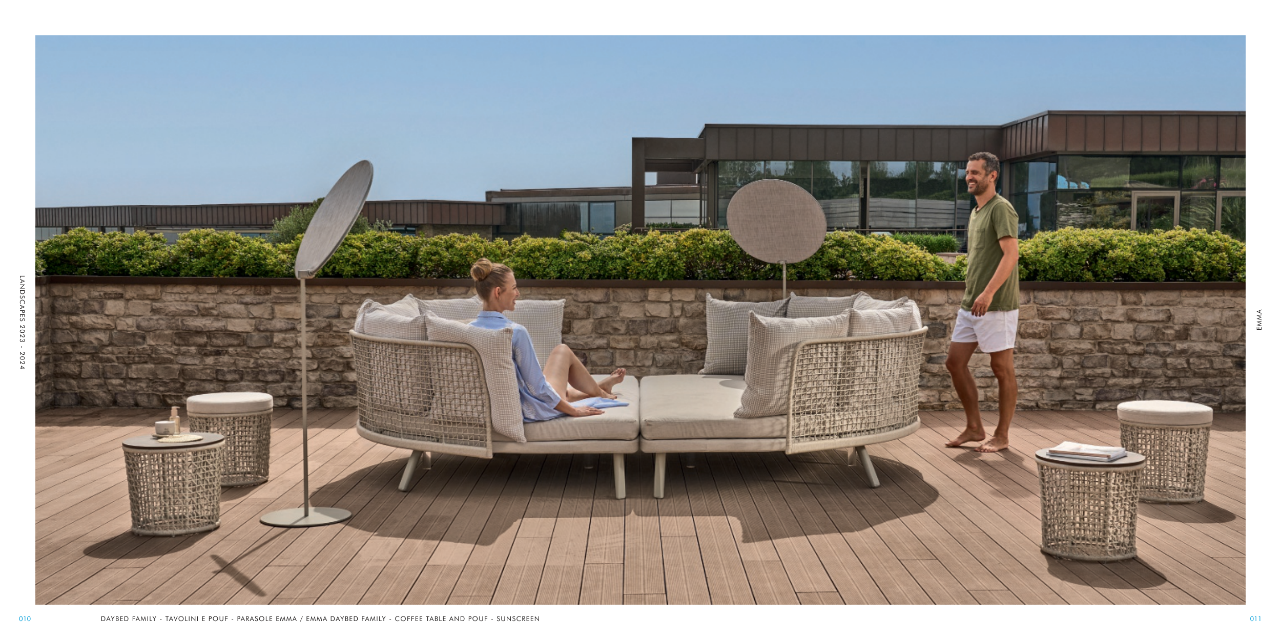 DAYBED FAMILY - TAVOLINI E POUF - PARASOLE EMMA / EMMA DAYBED FAMILY - COFFEE TABLE AND POUF - SUNSCREEN