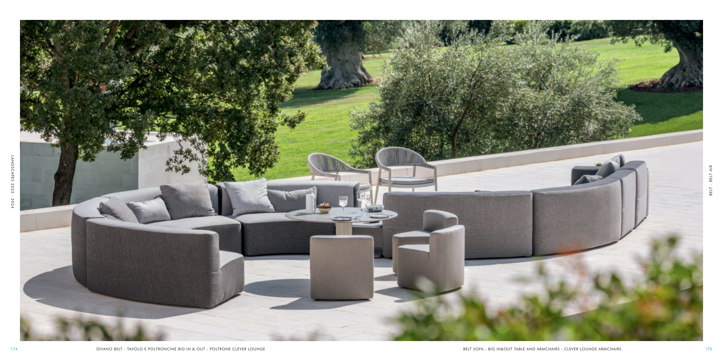 174 175 LANDSCAPES 2023 - 2024 DIVANO BELT - TAVOLO E POLTRONCINE BIG IN & OUT - POLTRONE CLEVER LOUNGE BELT - BELT AIR BELT SOFA - BIG IN&OUT TABLE AND ARMCHAIRS - CLEVER LOUNGE ARMCHAIRS
