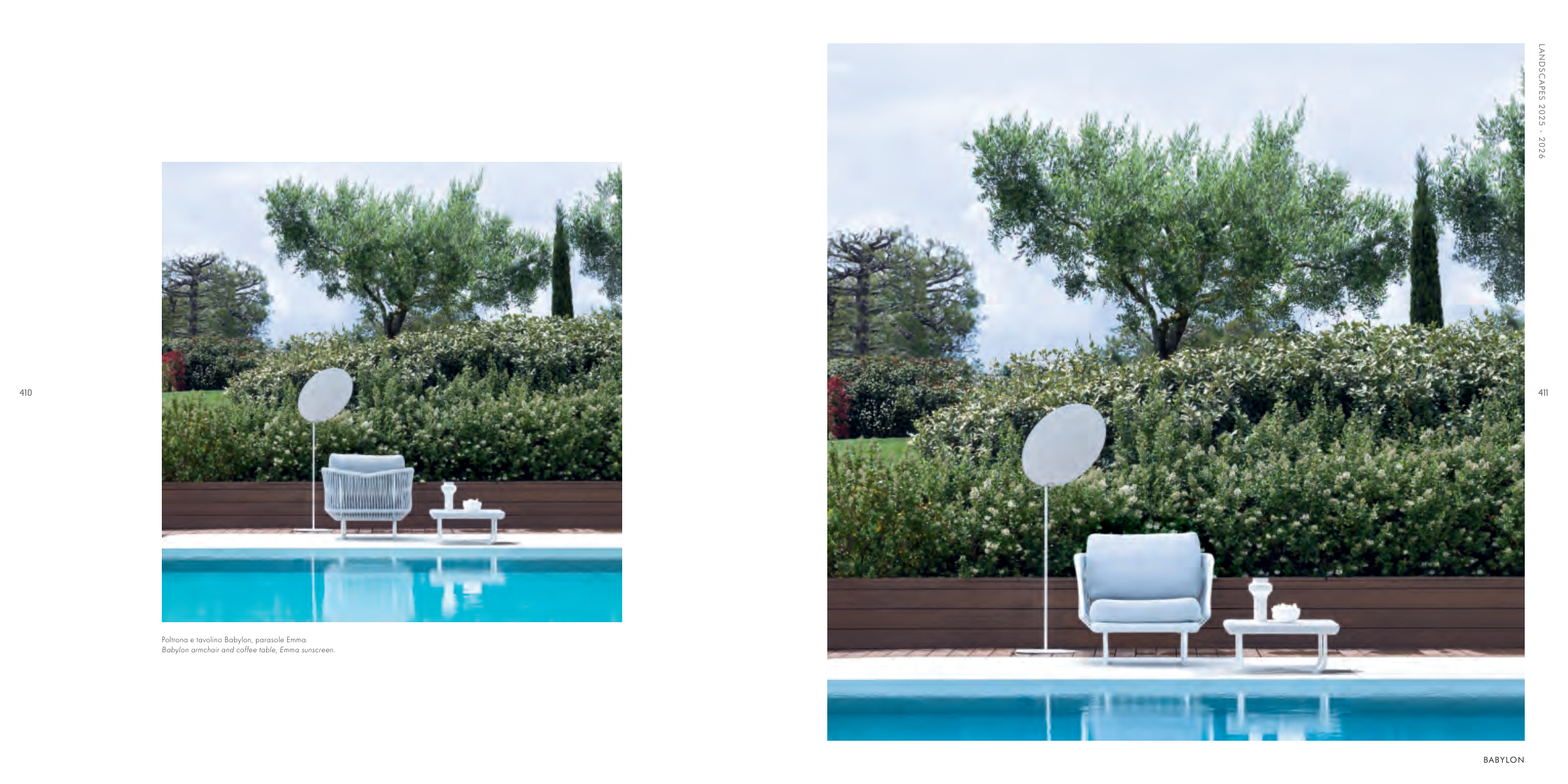Babylon armchair and coffee table, Emma sunscreen.