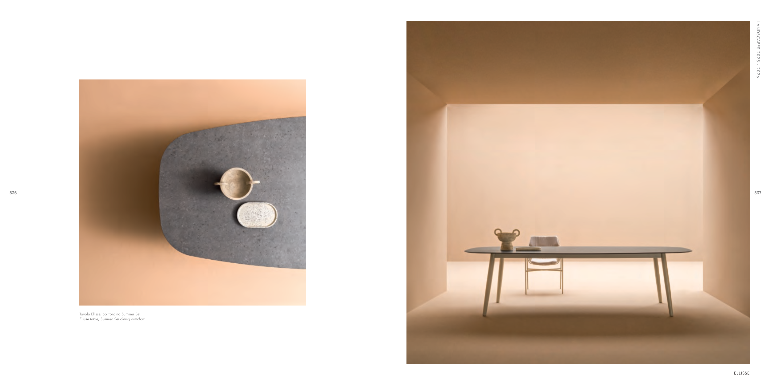 Ellisse table, Summer Set dining armchair.
