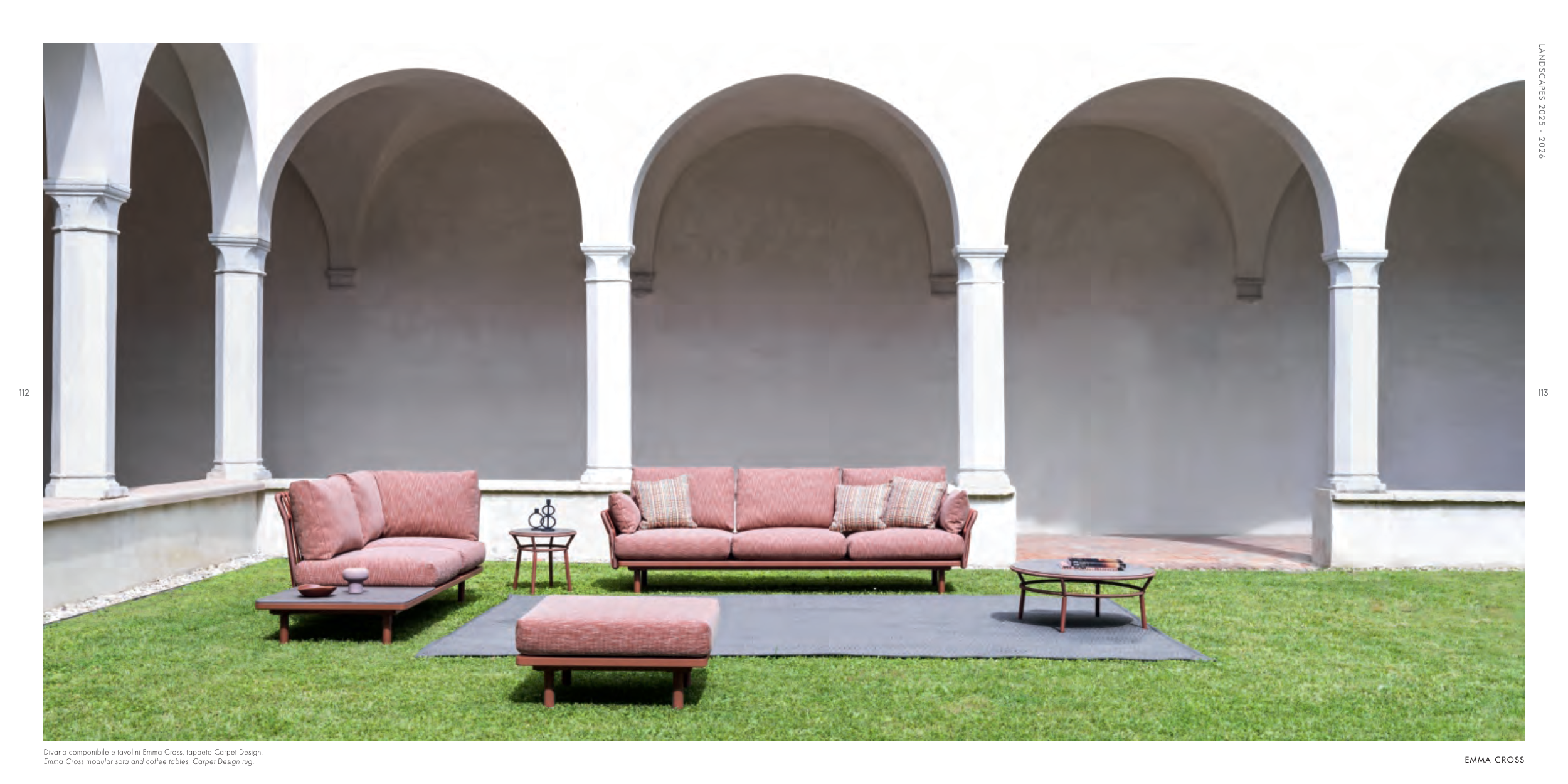 Divano componibile e tavolini Emma Cross, tappeto Carpet Design.