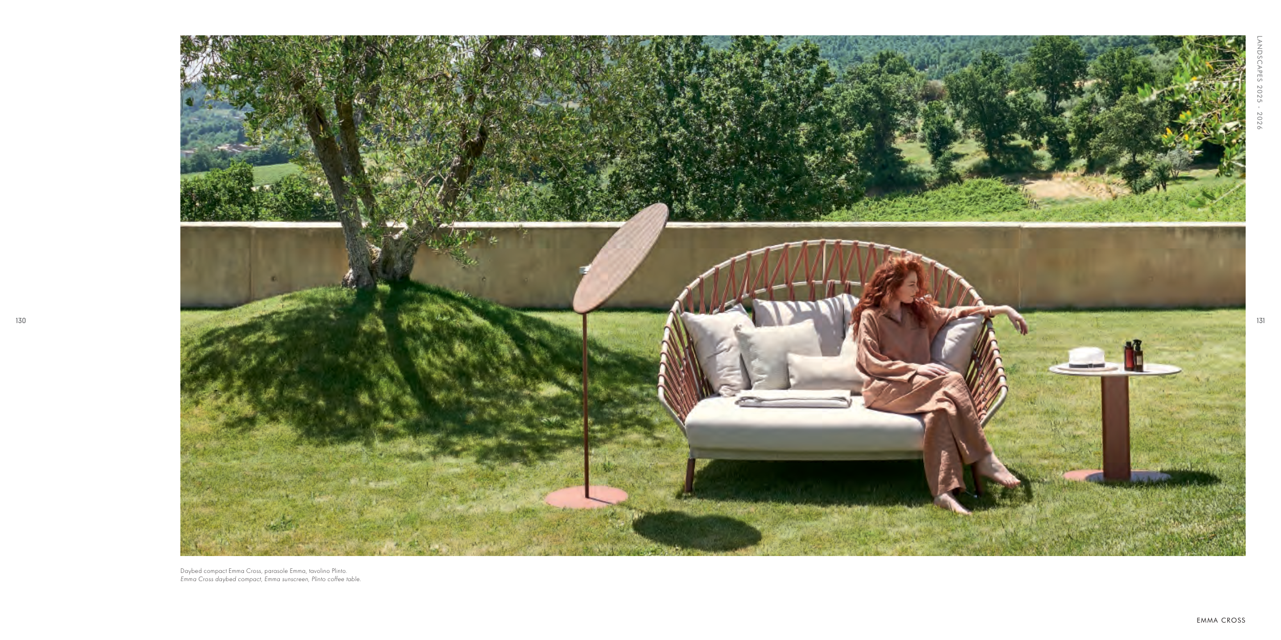 Emma Cross daybed compact, Emma sunscreen, Plinto coffee table.