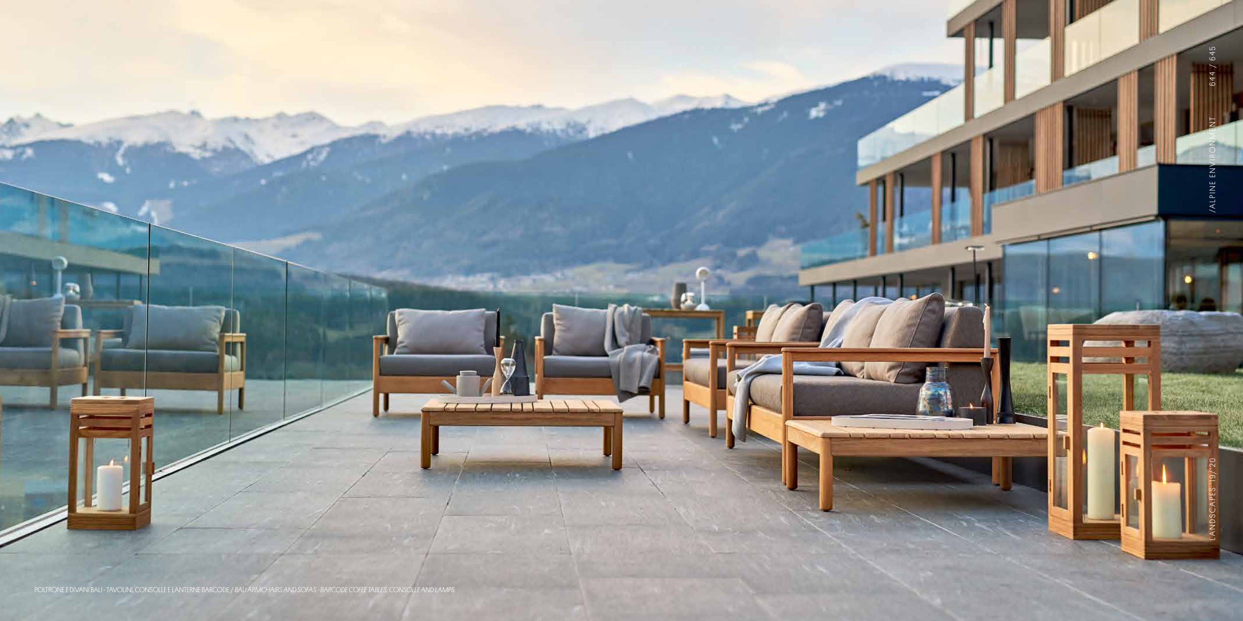 POLTRONE E DIVANI BALI - TAVOLINI, CONSOLLE E LANTERNE BARCODE / BALI ARMCHAIRS AND SOFAS - BARCODE COFEE TABLES, CONSOLLE AND LAMPS / 6 45 6 4 4 L A N DSC A P ES ' 1 9/ ' 2 0 /A LPI NE E NV I RO NM E NT