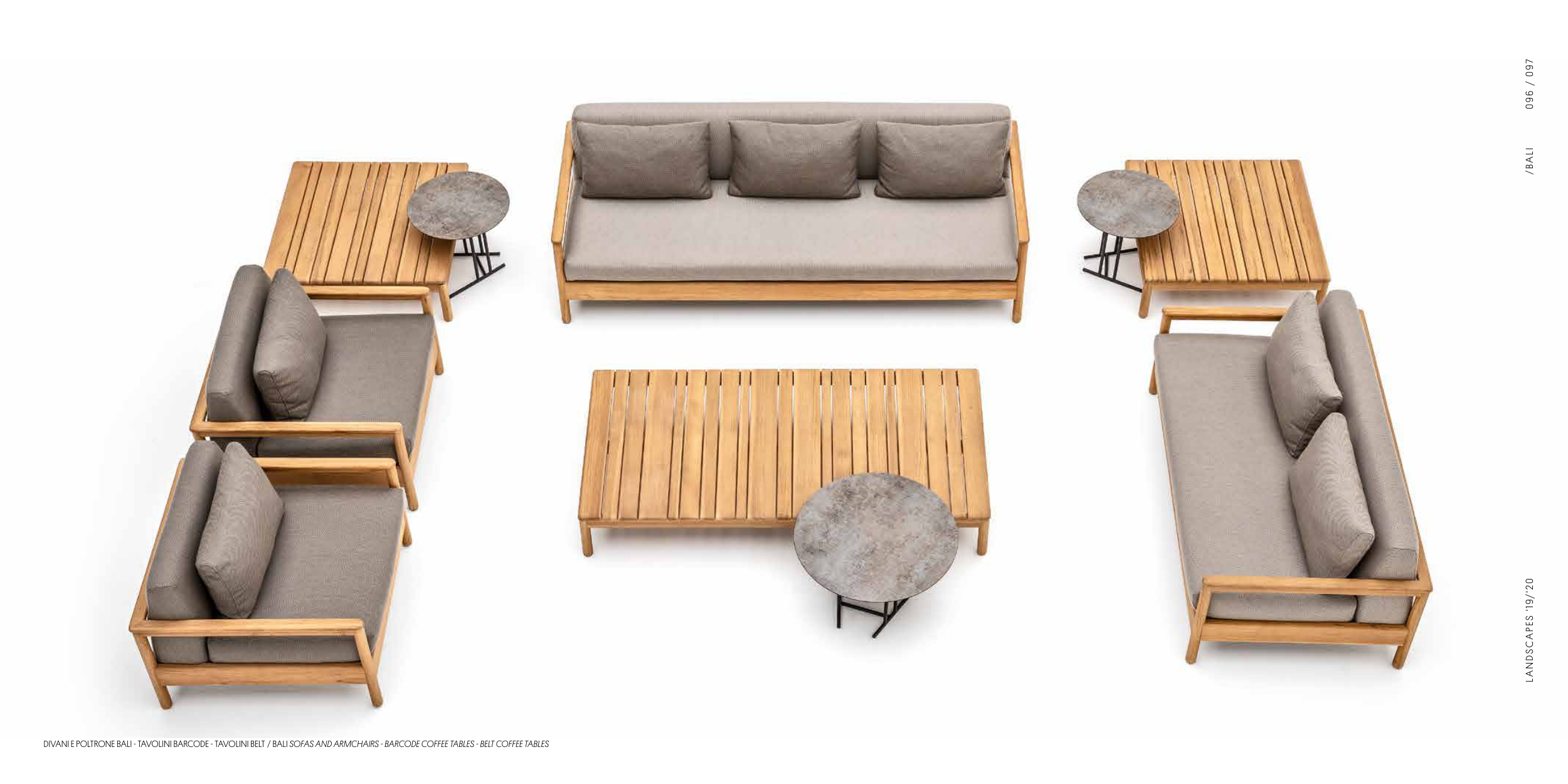 DIVANI E POLTRONE BALI - TAVOLINI BARCODE - TAVOLINI BELT / BALI SOFAS AND ARMCHAIRS - BARCODE COFFEE TABLES - BELT COFFEE TABLES L A N DSC A P ES ' 1 9/ ' 20 / 0 97 0 96 /BALI