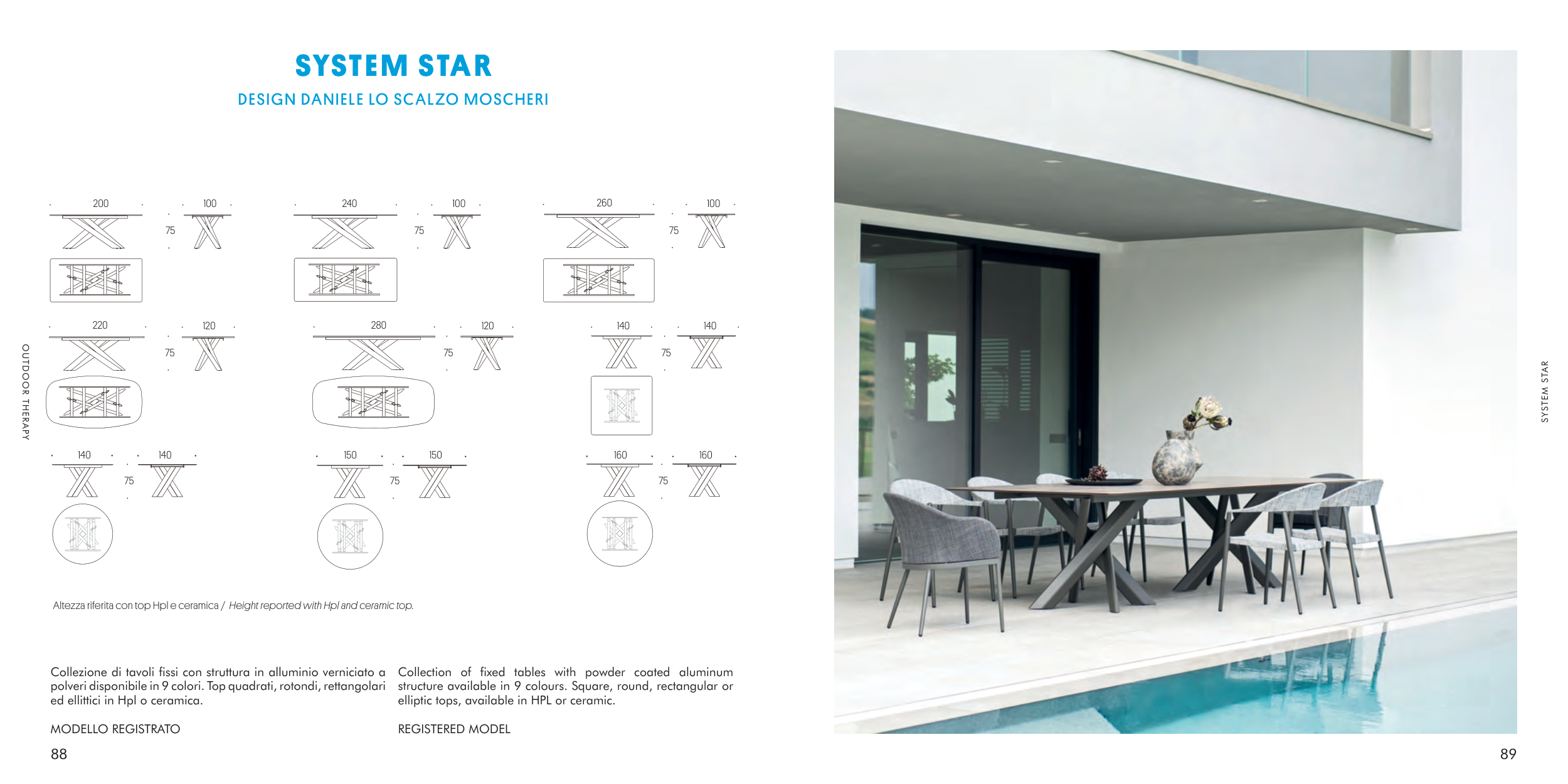 Collezione di tavoli fissi con struttura in alluminio verniciato a