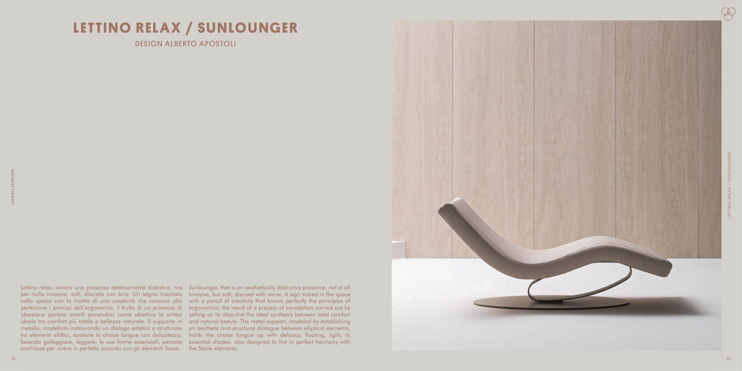 tra elementi ellittici, sostiene la chaise longue con delicatezza,