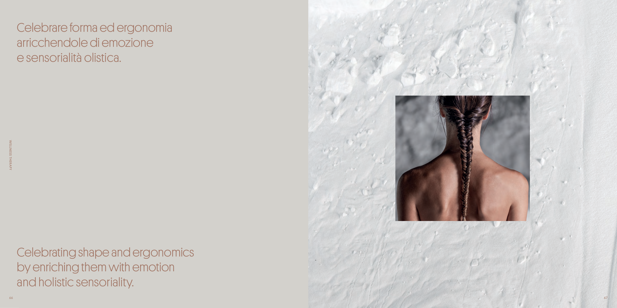 67 Celebrare forma ed ergonomia arricchendole di emozione e sensorialità olistica. Celebrating shape and ergonomics by enriching them with emotion and holistic sensoriality. 67 WELLNESS THERAPY 66