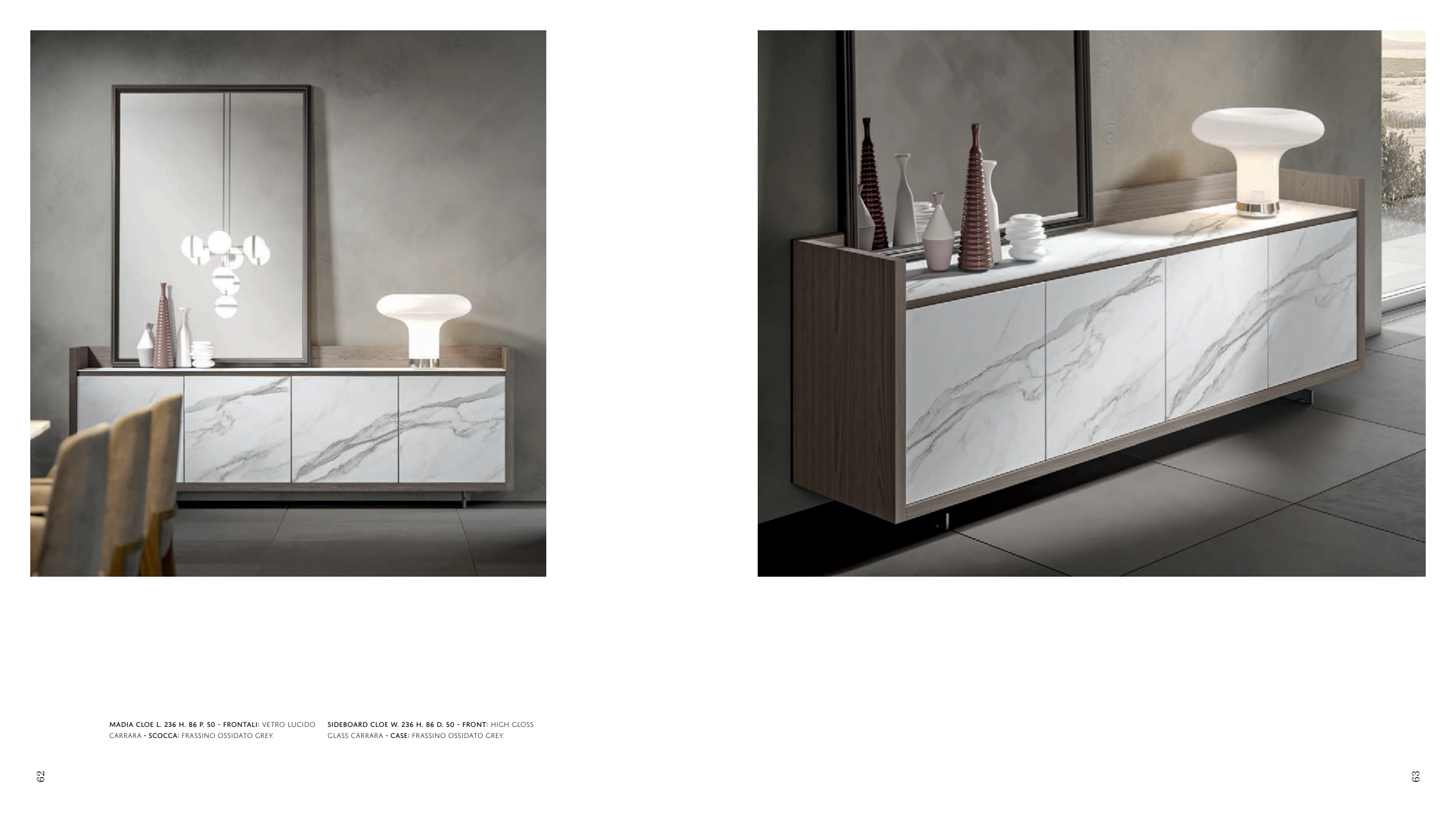 GLASS CARRARA - CASE: frassino ossidato grey.