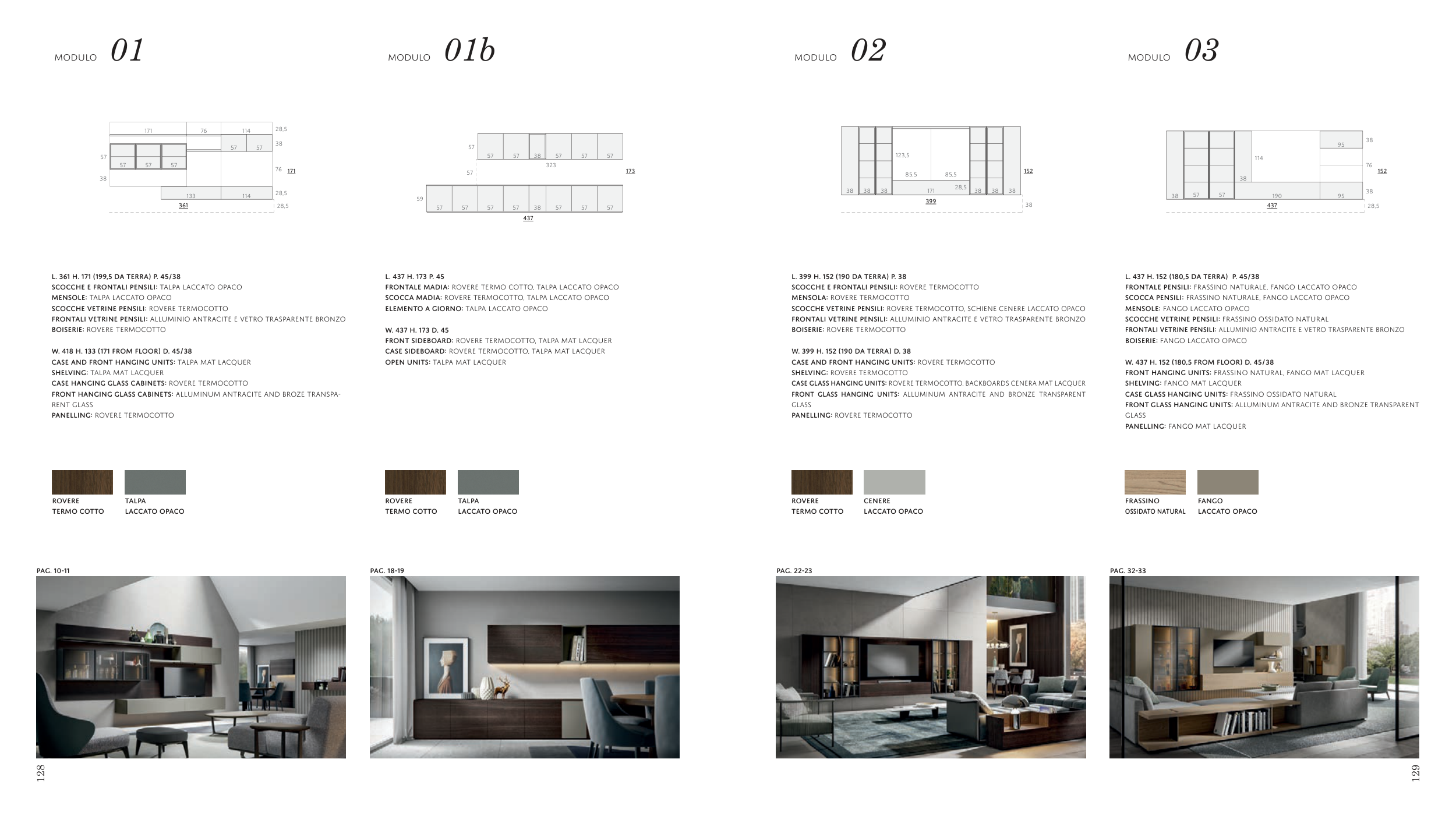 CASE GLASS HANGING UNITS: ROVERE TERMOCOTTO, BACKBOARDS CENERA MAT LACQUER