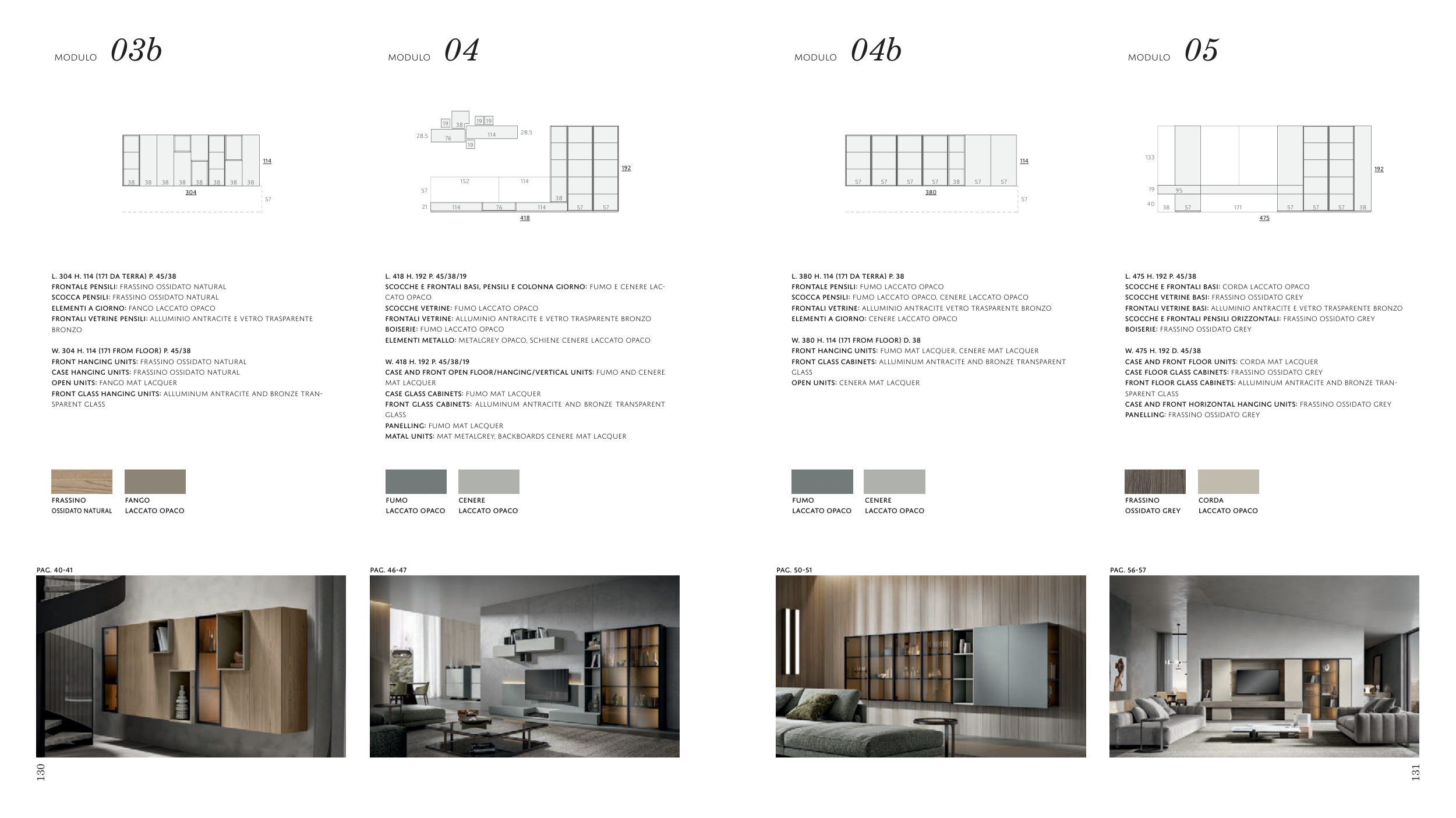 CASE AND FRONT HORIZONTAL HANGING UNITS: FRASSINO OSSIDATO GREY