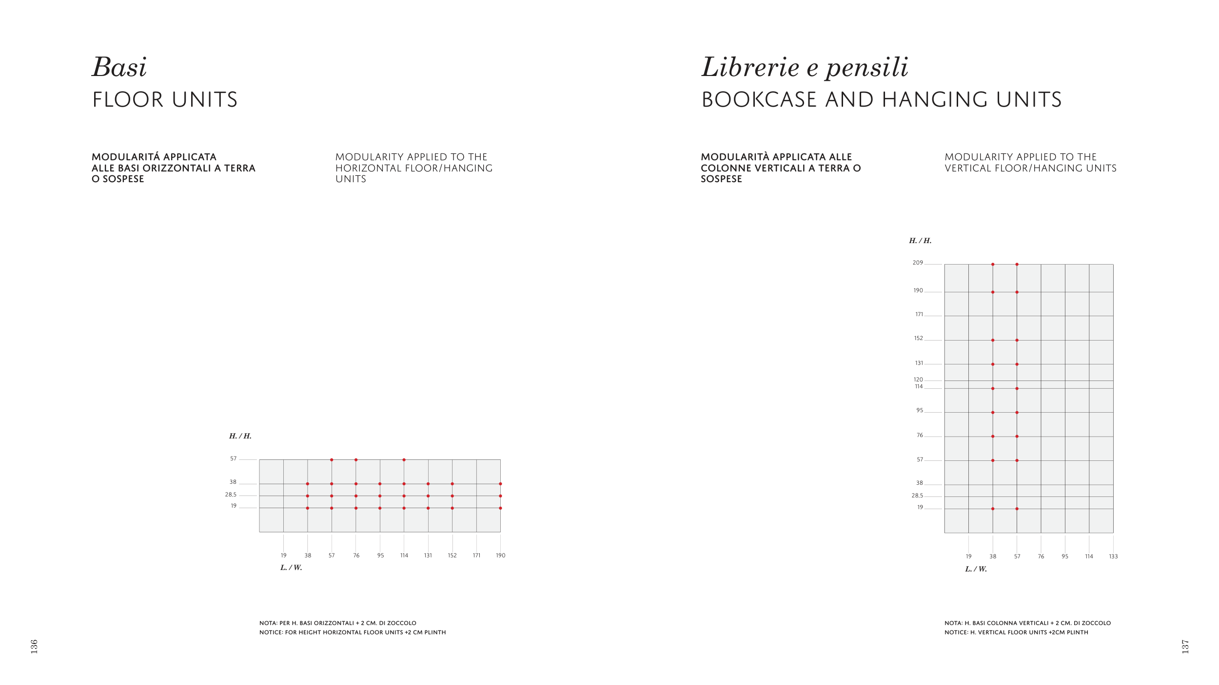 NOTA: per H. basi orizzontali + 2 cm. di zoccolo