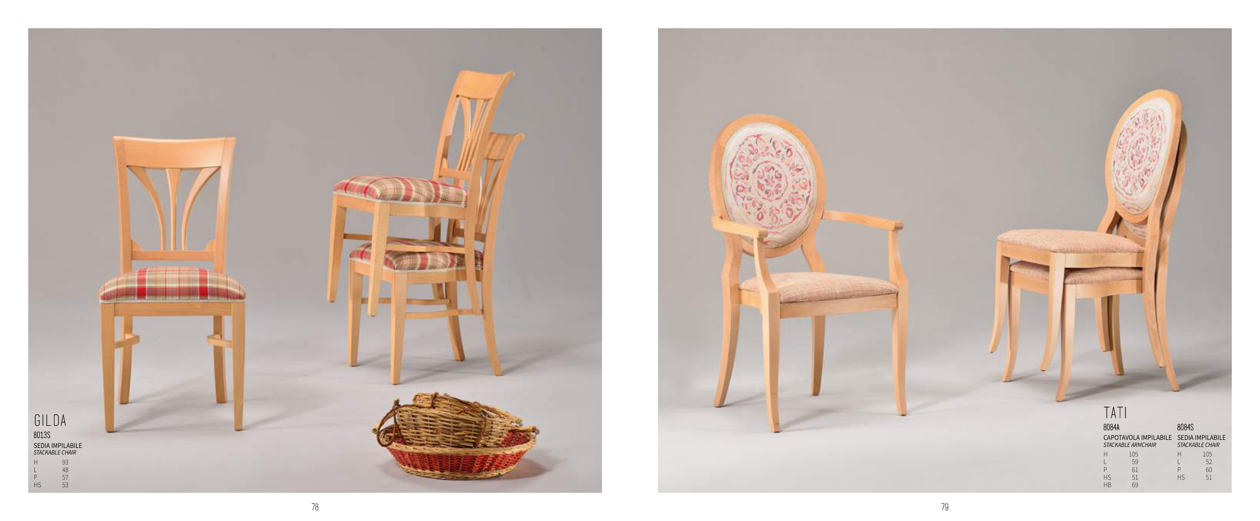 79 78 TATI 8084A 8084S CAPOTAVOLA IMPILABILE STACkABLE ARmCHAIR SEDIA IMPILABILE STACkABLE CHAIR H 105 H 105 L 59 L 52 P 61 P 60 HS 51 HS 51 HB 69 GILDA 8013S SEDIA IMPILABILE STACkABLE CHAIR H 93 L 48 P 57 HS 53