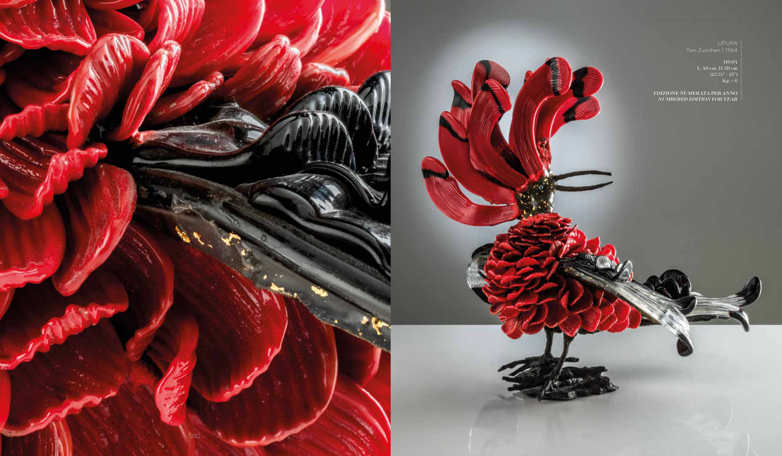 UPUPA Toni Zuccheri | 1964 410.04 L. 40 cm, H 38 cm (15,74” - 15”) Kg: ~ 6 EDIZIONE NUMERATA PER ANNO NUMBERED EDITION FOR YEAR 282 283 A R T G L A S S | M A S T E R G L A S S