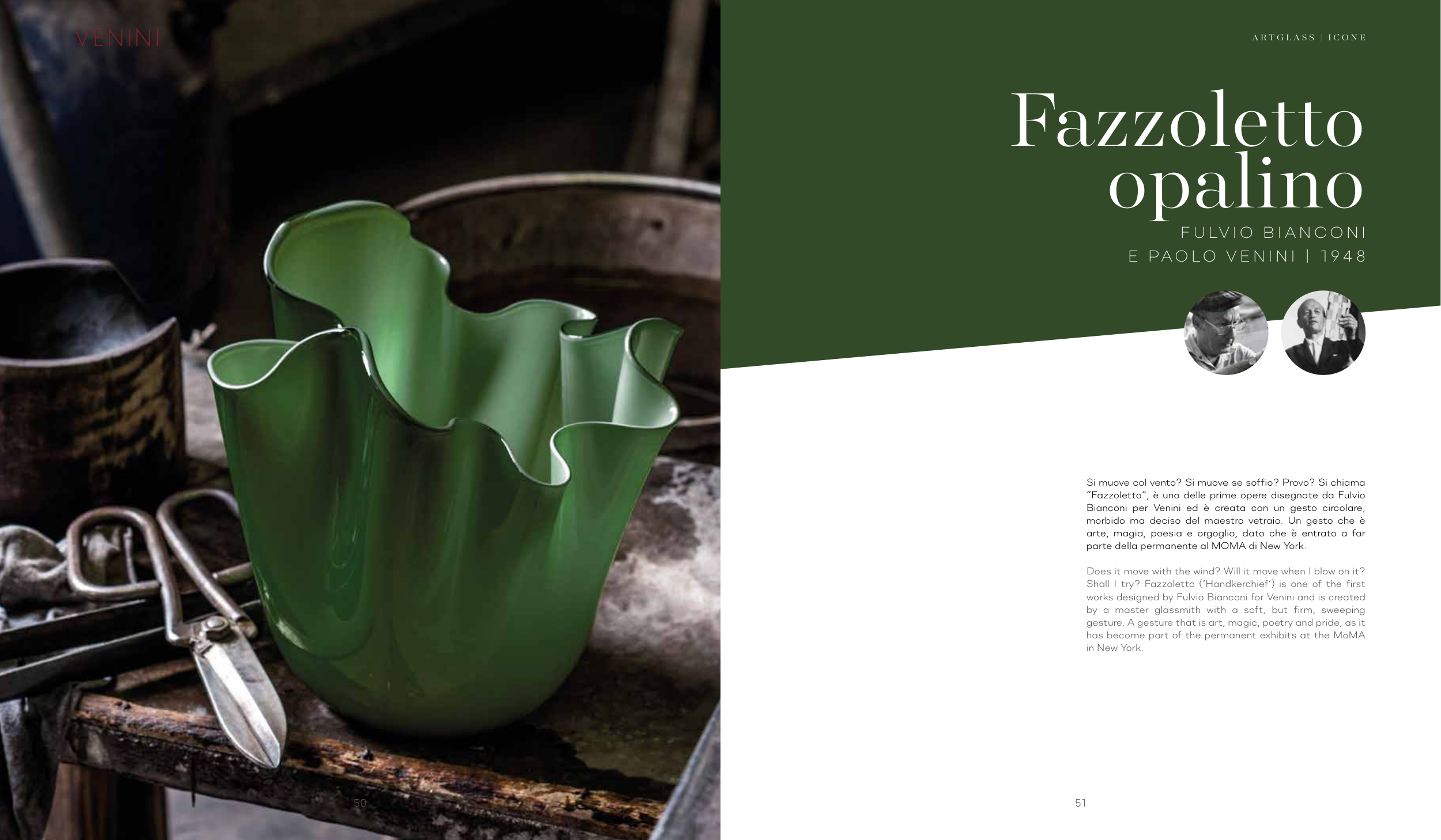 works designed by Fulvio Bianconi for Venini and is created
