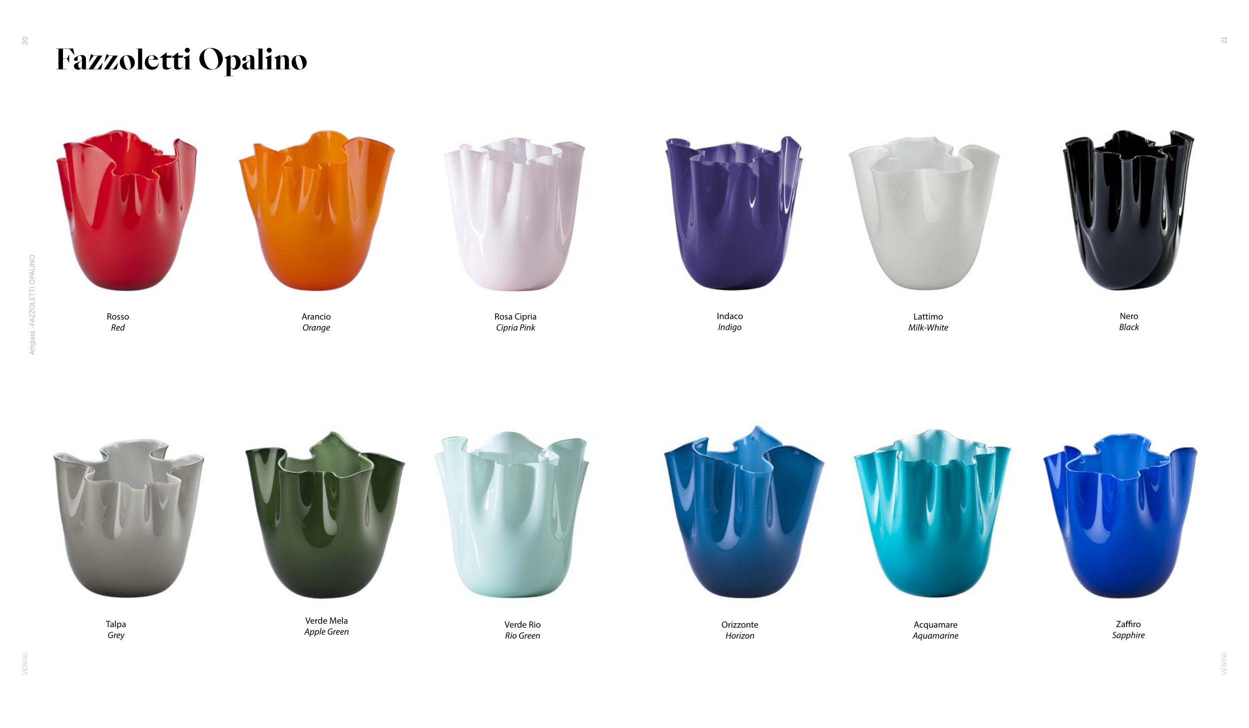 VENINI VENINI Fazzoletti Opalino Rosso Red Arancio Orange Talpa Grey Verde Mela Apple Green Verde Rio Rio Green Rosa Cipria Cipria Pink Orizzonte Horizon Acquamare Aquamarine Zaffiro Sapphire Indaco Indigo Lattimo Milk-White Nero Black Artglass -FAZZOLETTI OPALINO