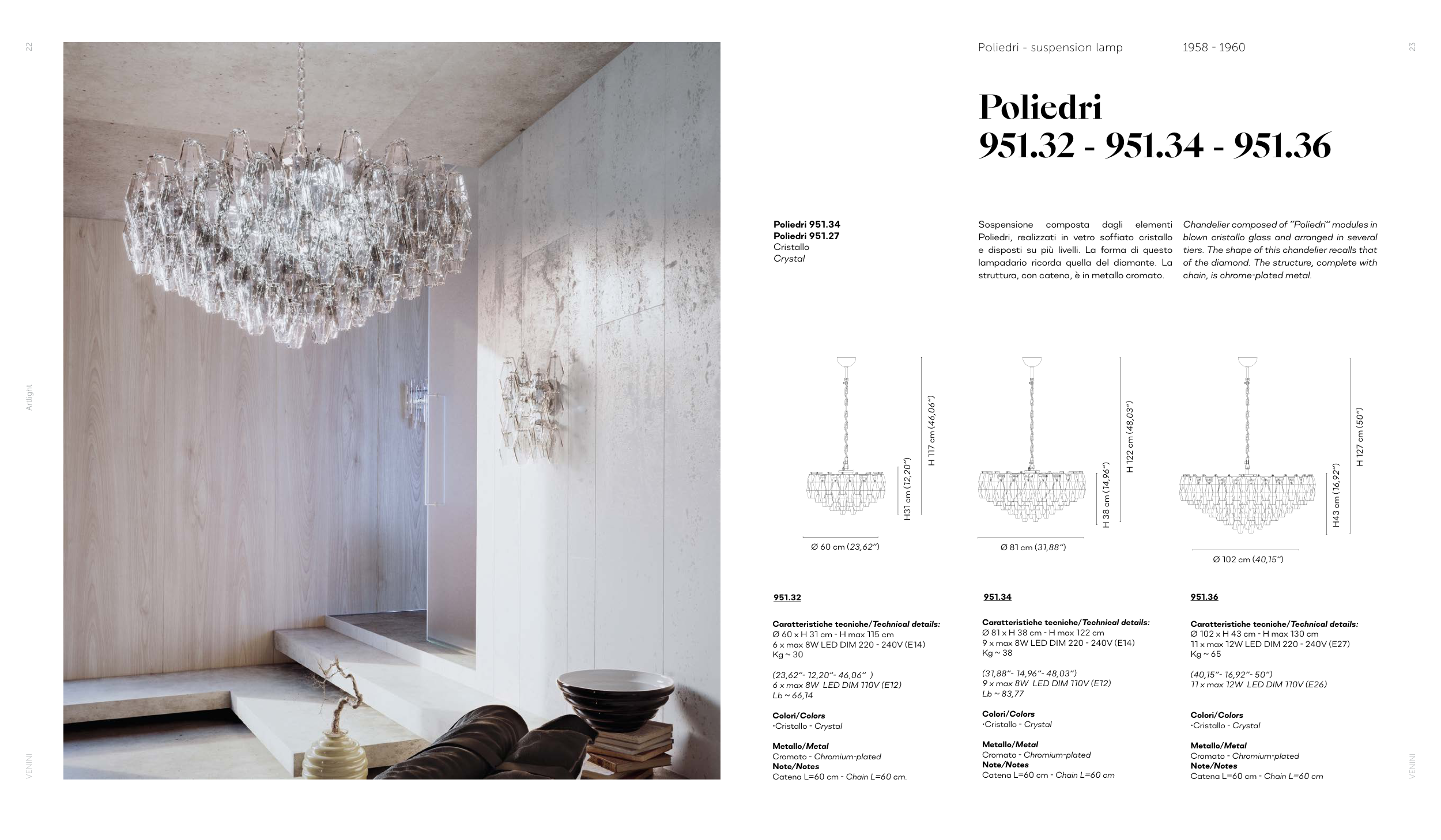 Chandelier composed of “Poliedri” modules in