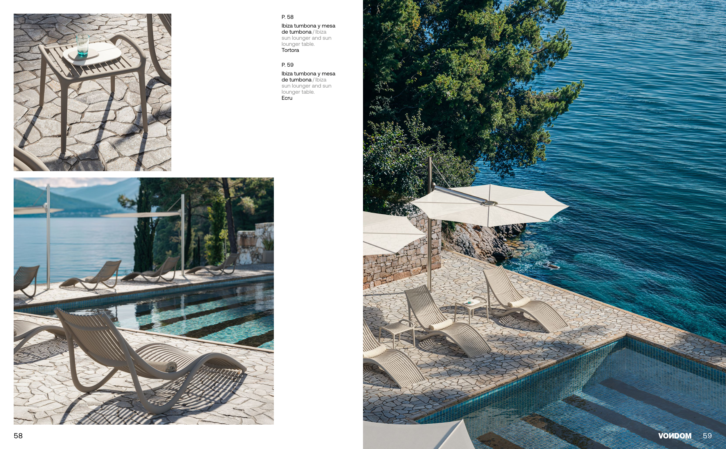 P. 58 Ibiza tumbona y mesa de tumbona / Ibiza sun lounger and sun lounger table. Tortora P. 59 Ibiza tumbona y mesa de tumbona / Ibiza sun lounger and sun lounger table. Ecru 59 58