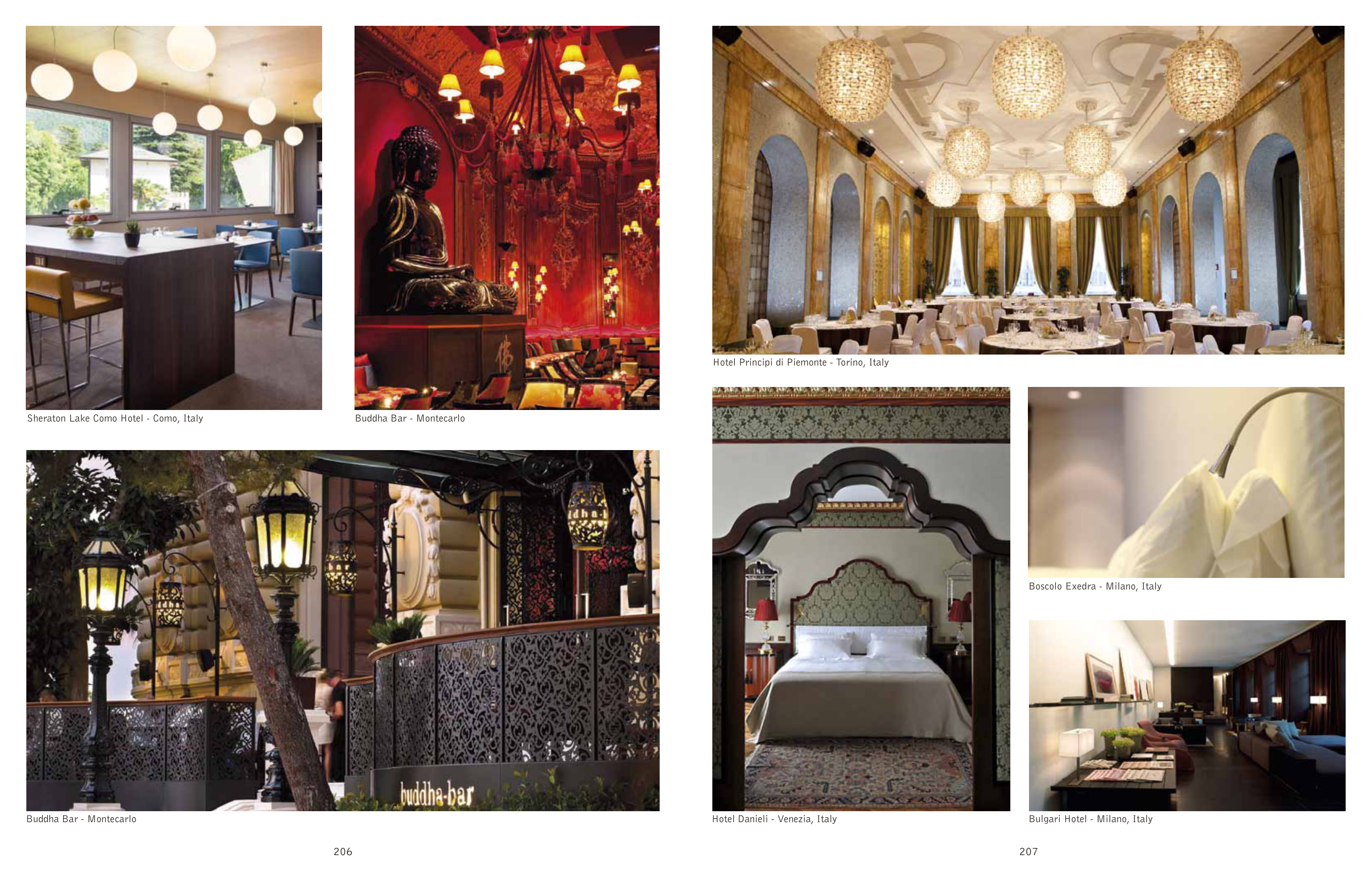 Hotel Principi di Piemonte - Torino, Italy Hotel Danieli - Venezia, Italy Bulgari Hotel - Milano, Italy Boscolo Exedra - Milano, Italy Sheraton Lake Como Hotel - Como, Italy Buddha Bar - Montecarlo Buddha Bar - Montecarlo 206 207
