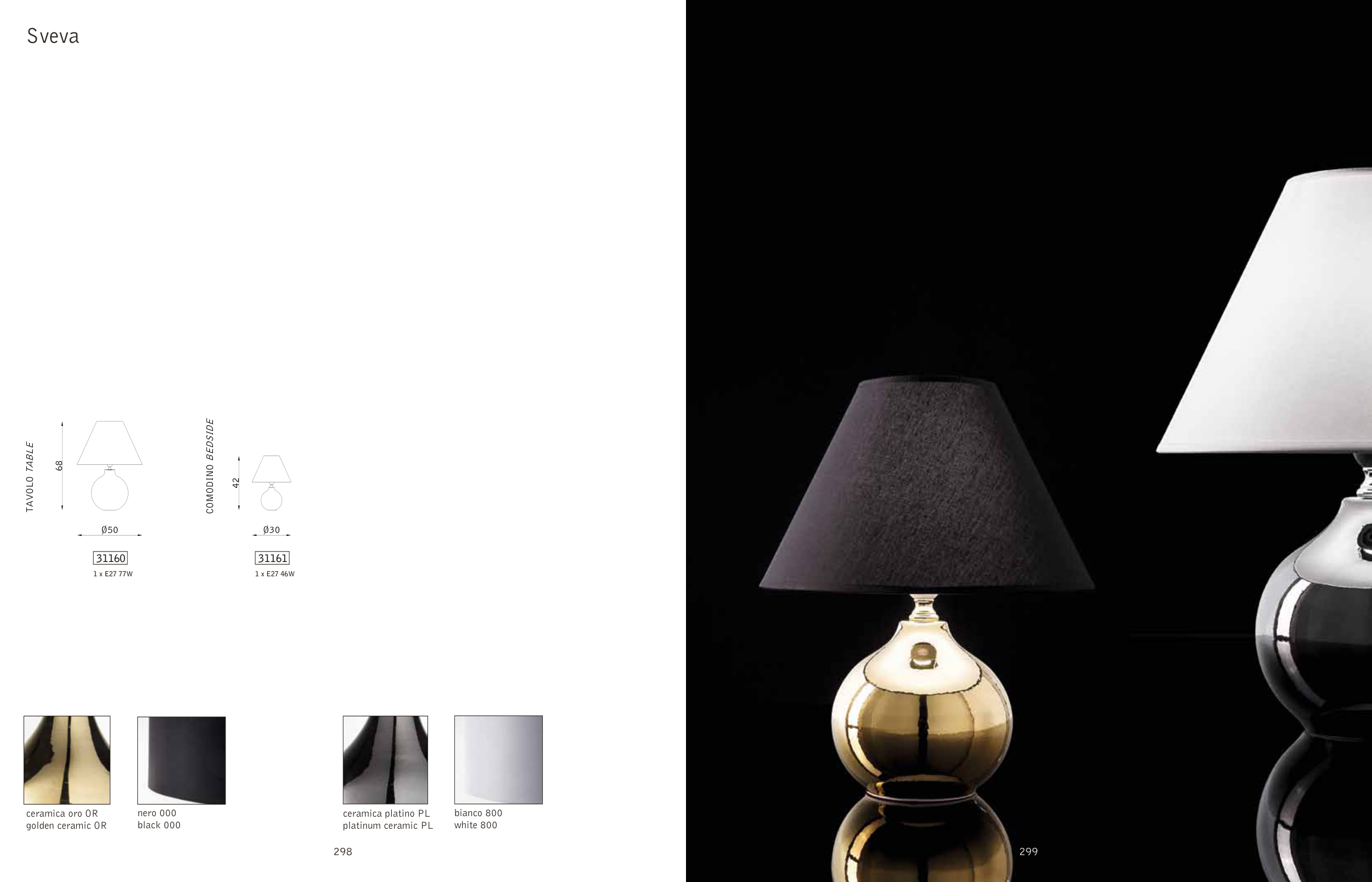 Sveva ceramica oro OR golden ceramic OR ceramica platino PL platinum ceramic PL nero 000 black 000 bianco 800 white 800 31161 31160 1 x E27 46W 1 x E27 77W 299 298