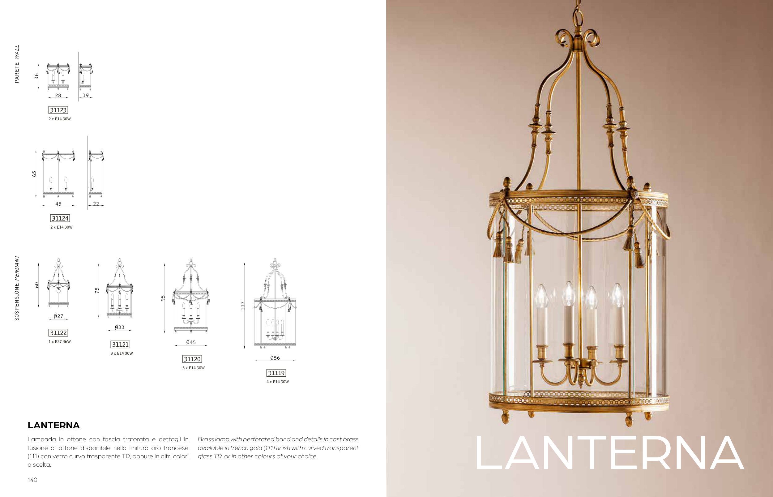 Lampada in ottone con fascia traforata e dettagli in
