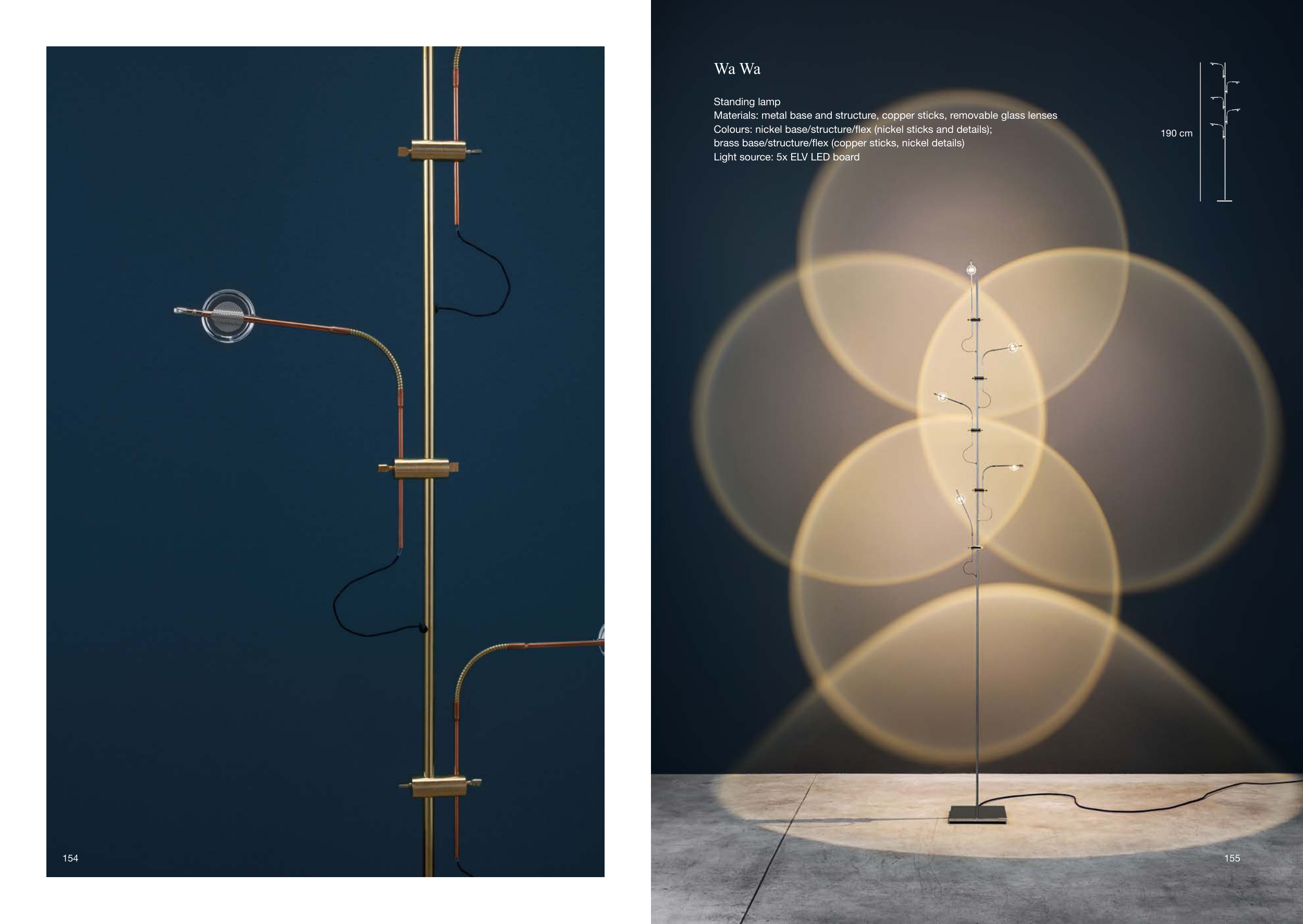 Materials: metal base and structure, copper sticks, removable glass lenses