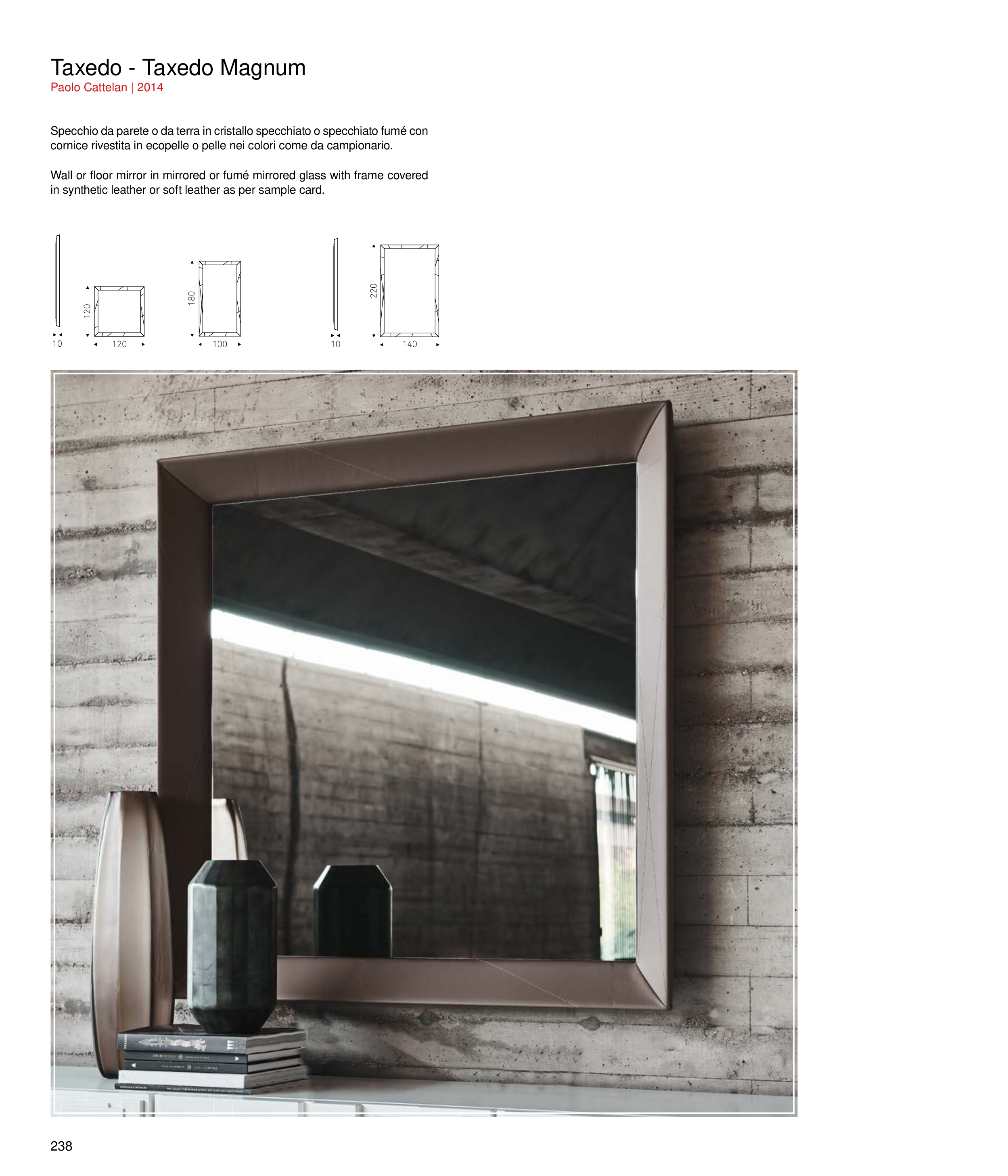 Wall or floor mirror in mirrored or fumé mirrored glass with frame covered