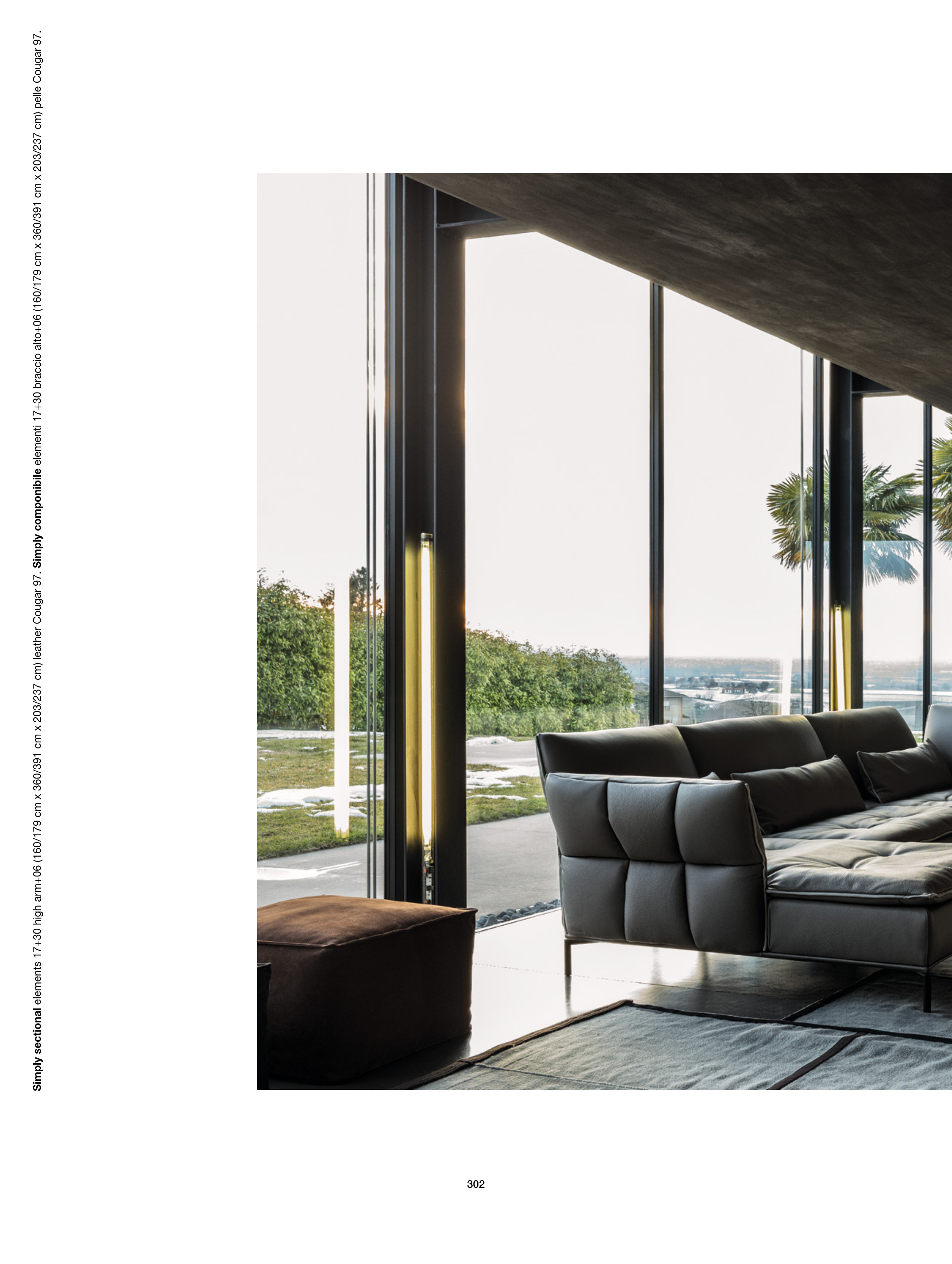 Simply sectional elements 17+30 high arm+06 (160/179 cm x 360/391 cm x 203/237 cm) leather Cougar 97. Simply componibile elementi 17+30 braccio alto+06 (160/179 cm x 360/391 cm x 203/237 cm) pelle Cougar 97. 302