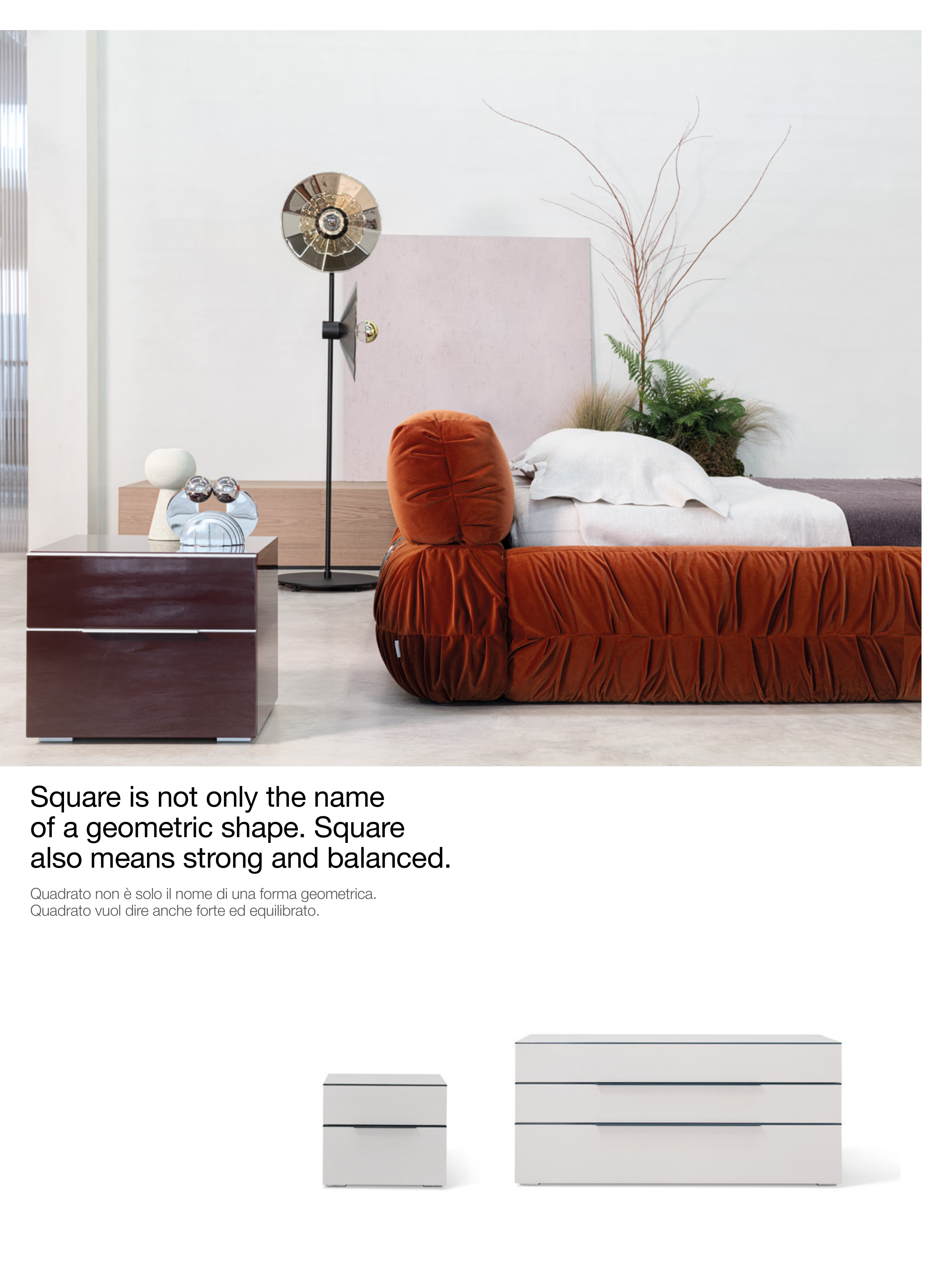 Square is not only the name of a geometric shape. Square also means strong and balanced. Quadrato non è solo il nome di una forma geometrica. Quadrato vuol dire anche forte ed equilibrato.