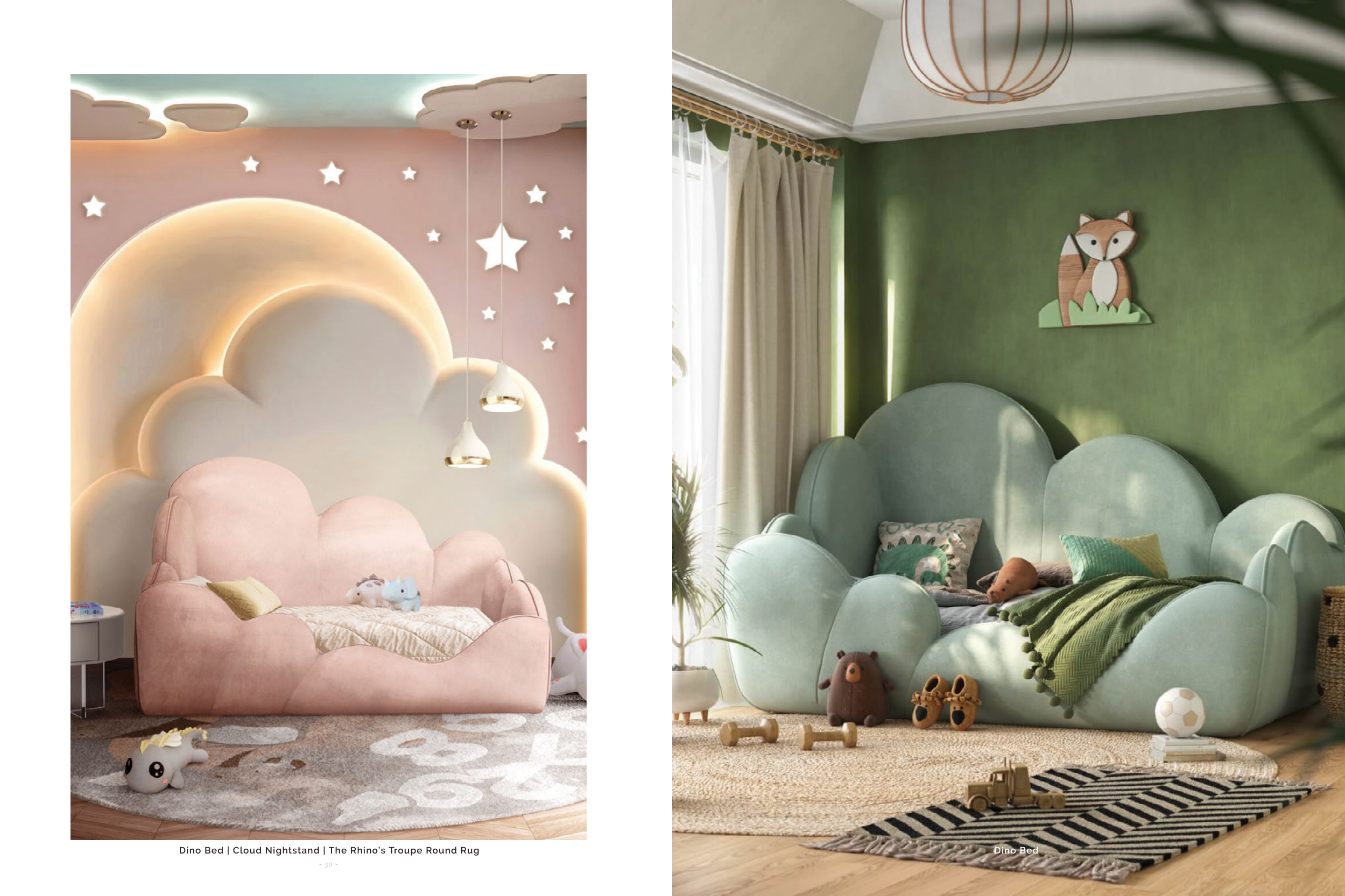 Dino Bed | Cloud Nightstand | The Rhino’s Troupe Round Rug
