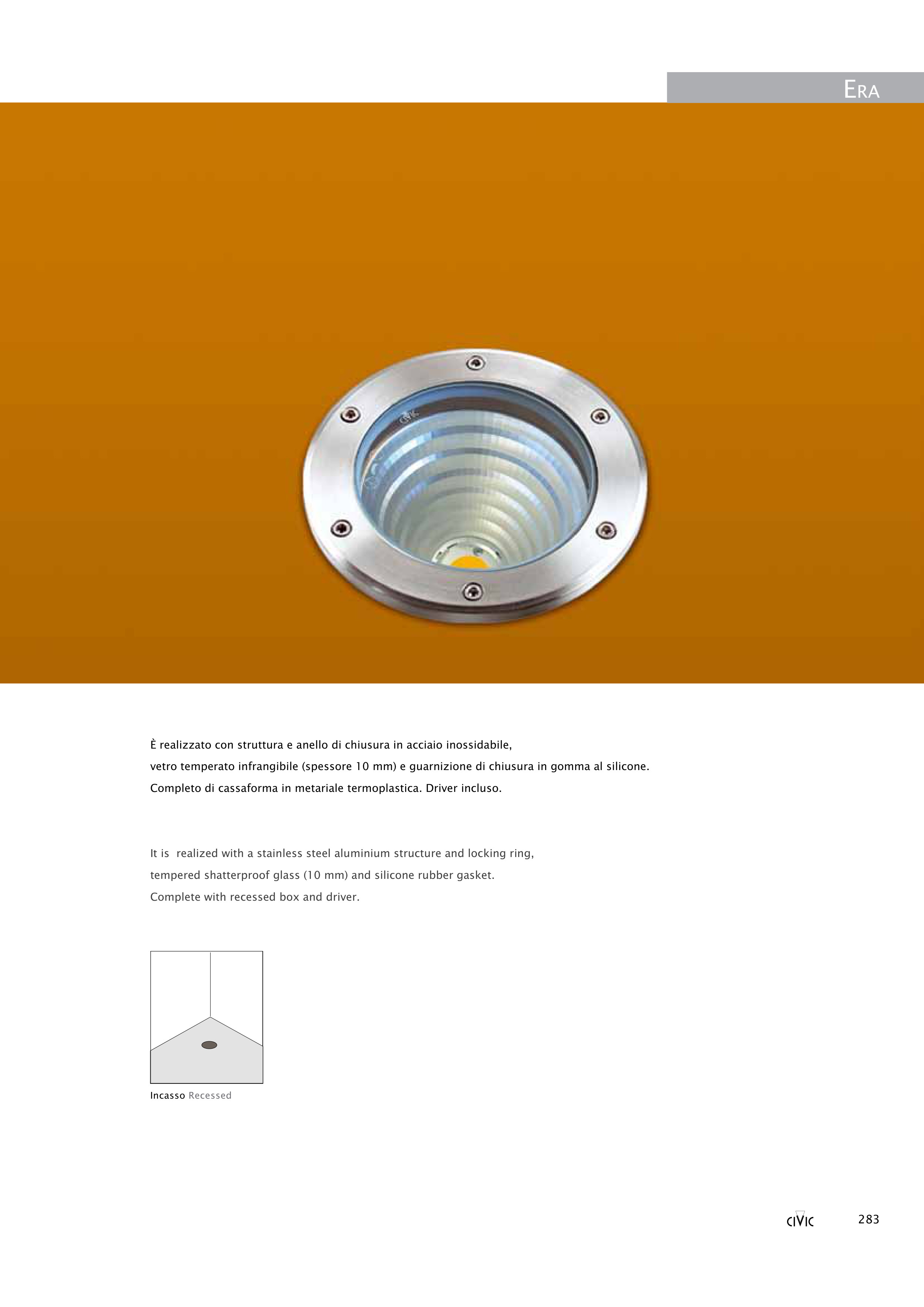 It is realized with a stainless steel aluminium structure and locking ring,