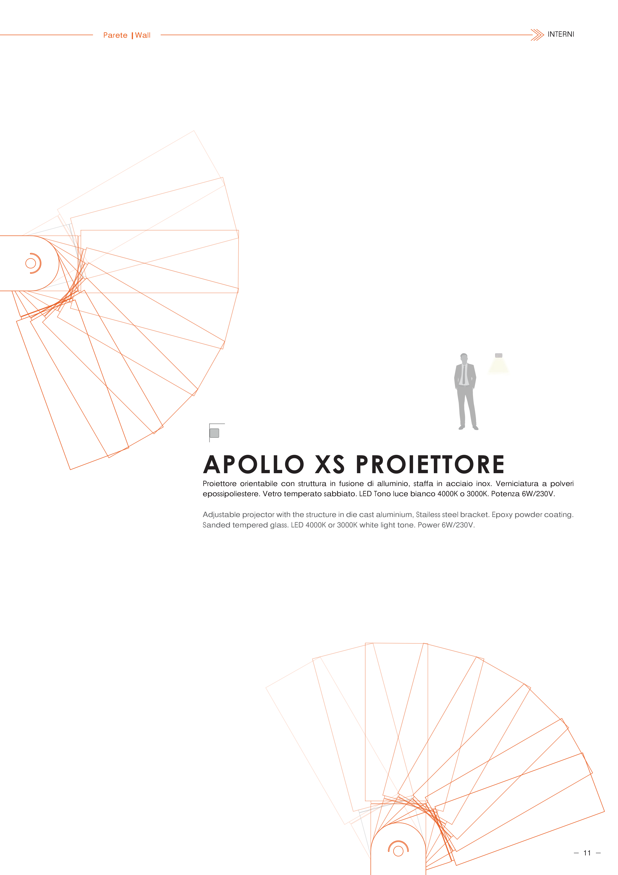 Adjustable projector with the structure in die cast aluminium, Stailess steel bracket. Epoxy powder coating.