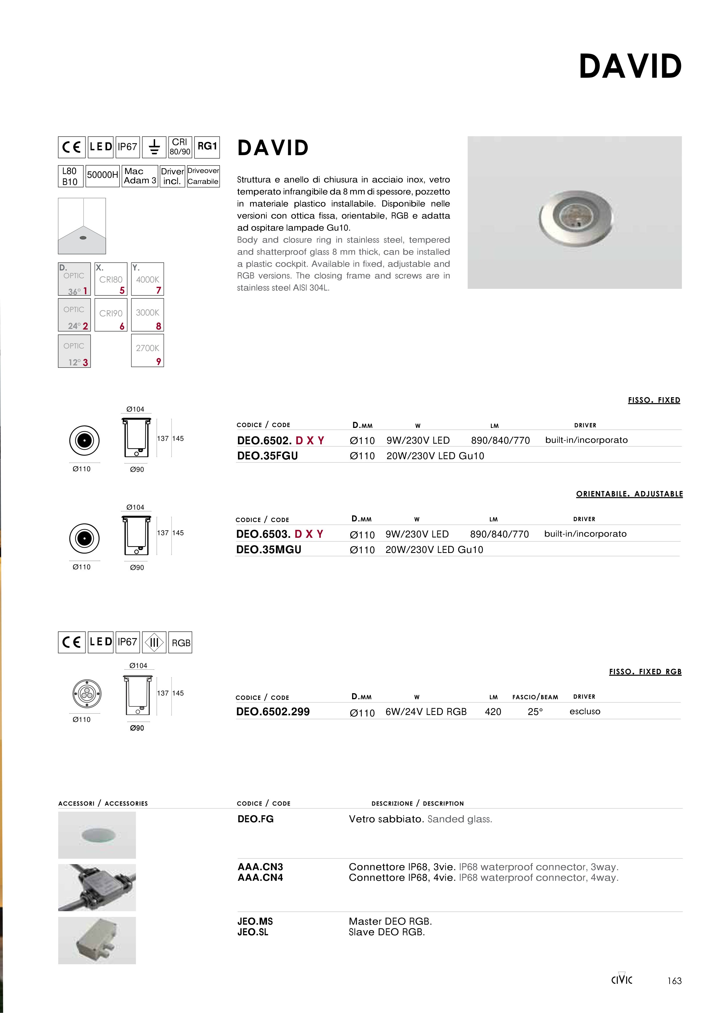 versioni con ottica fissa, orientabile, RGB e adatta