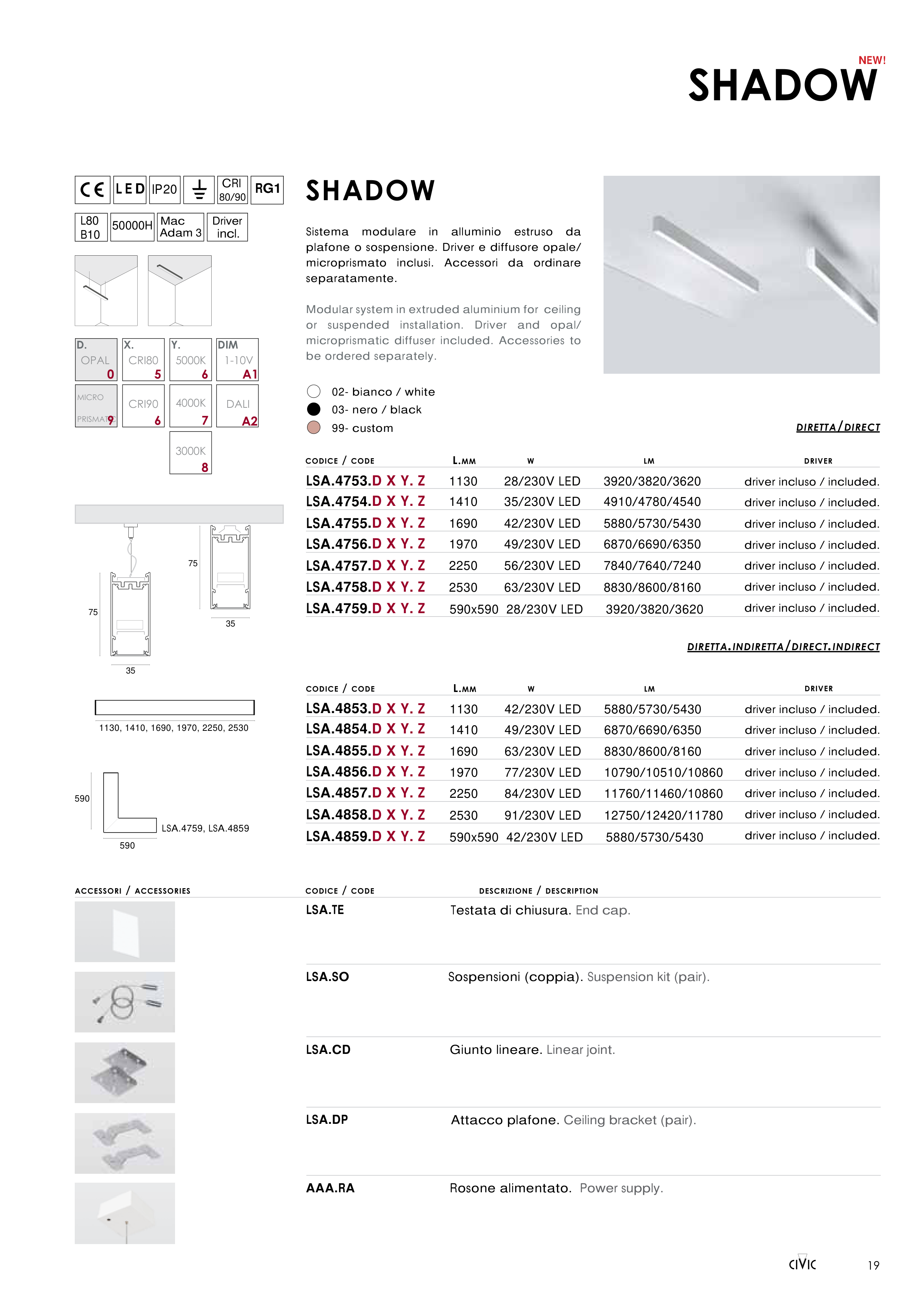 microprismatic diffuser included. Accessories to