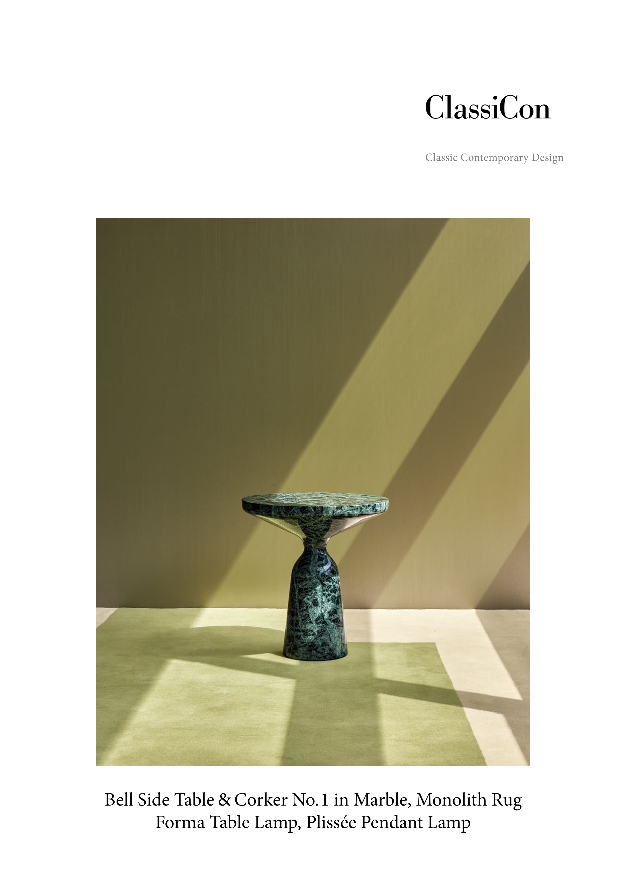 Bell Side Table & Corker No. 1 in Marble, Monolith Rug