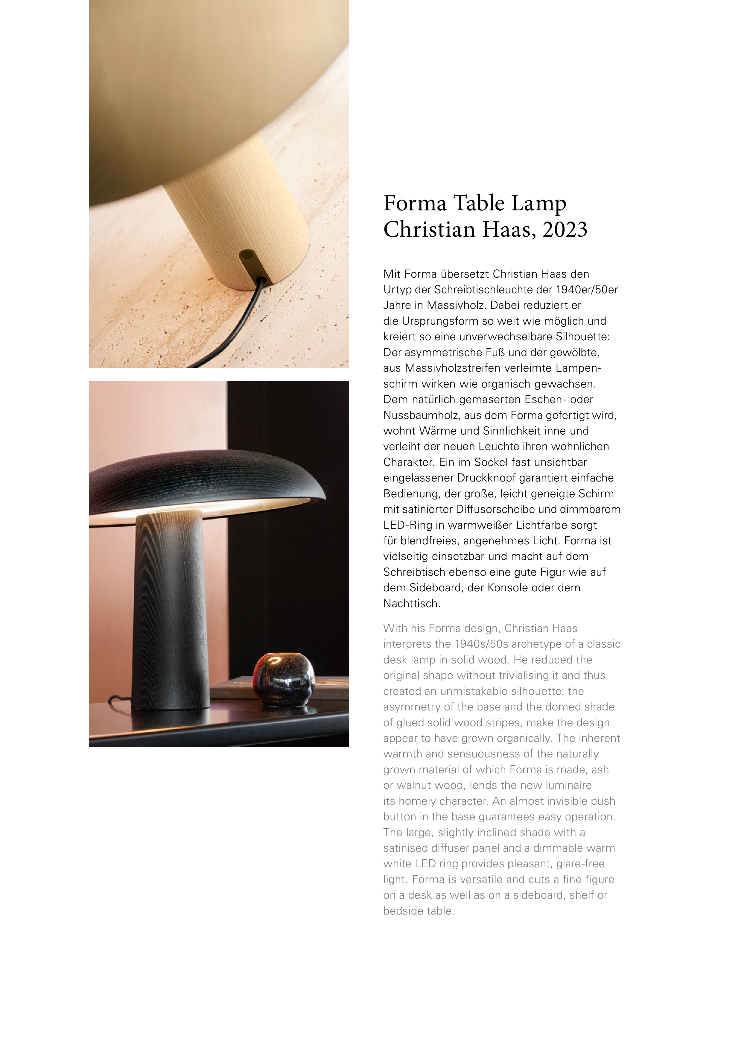 or walnut wood, lends the new luminaire