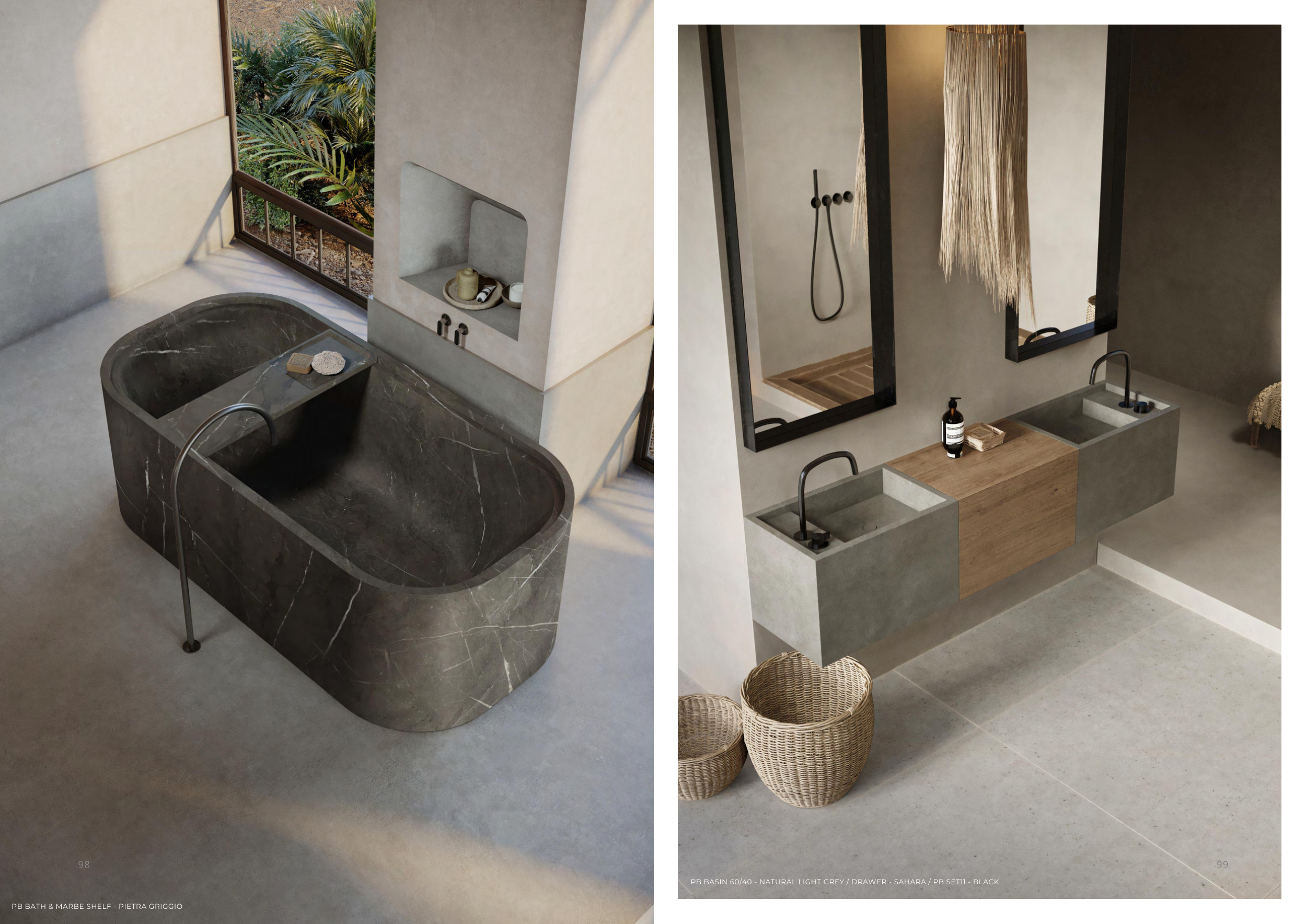 PB BASIN 60/40 - NATURAL LIGHT GREY / DRAWER - SAHARA / PB SET11 - BLACK