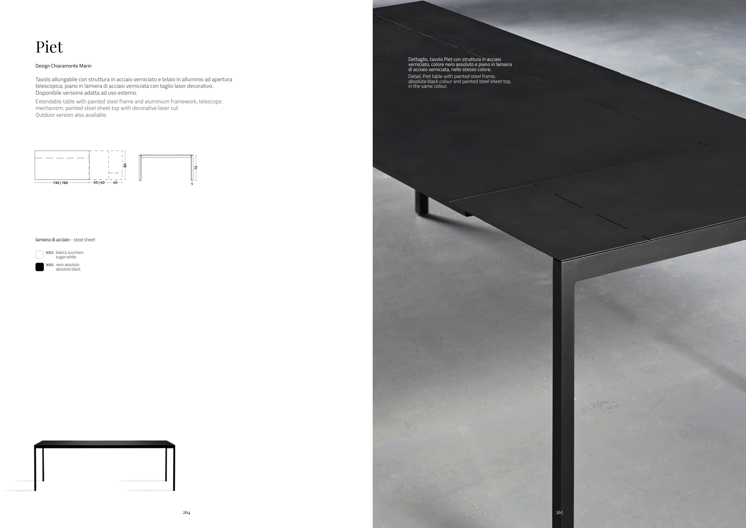 Dettaglio, tavolo Piet con struttura in acciaio