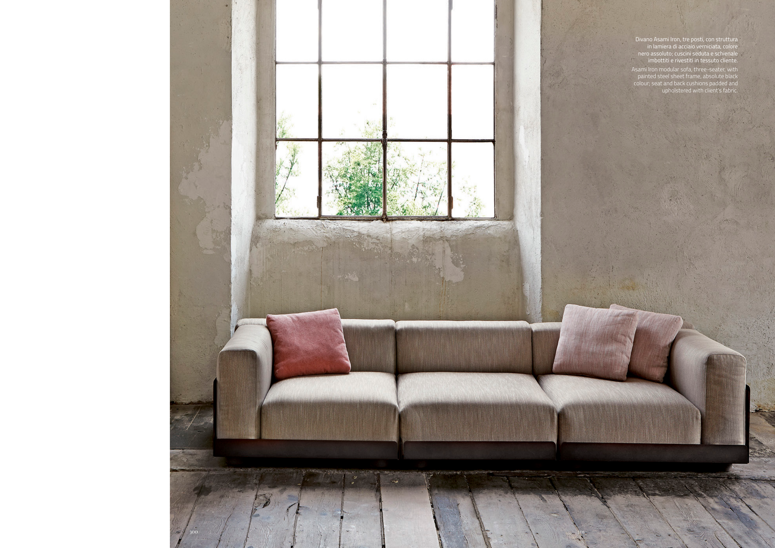 Divano Asami Iron, tre posti, con struttura