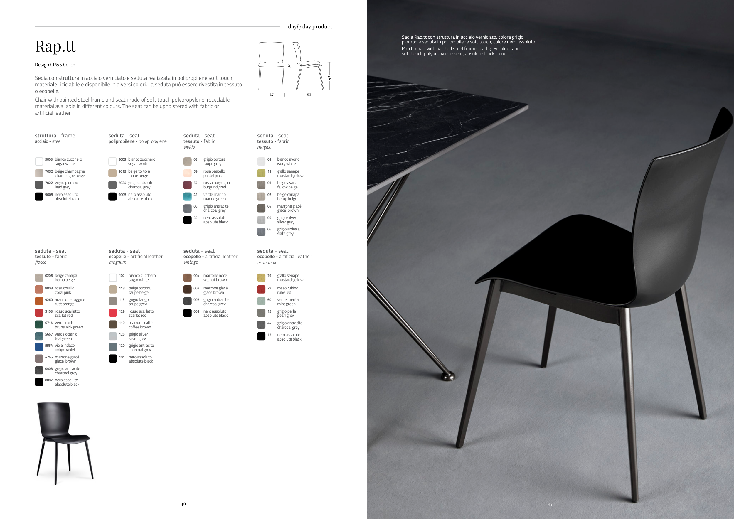 Rap.tt chair with painted steel frame, lead grey colour and