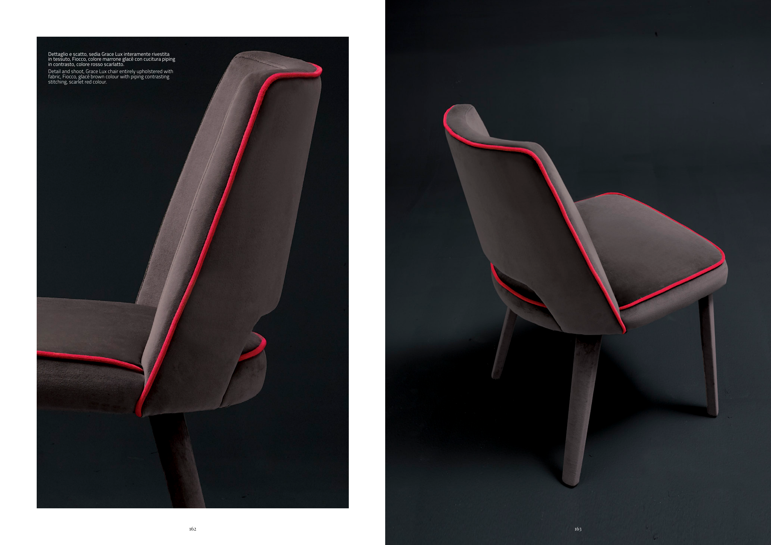 Dettaglio e scatto, sedia Grace Lux interamente rivestita