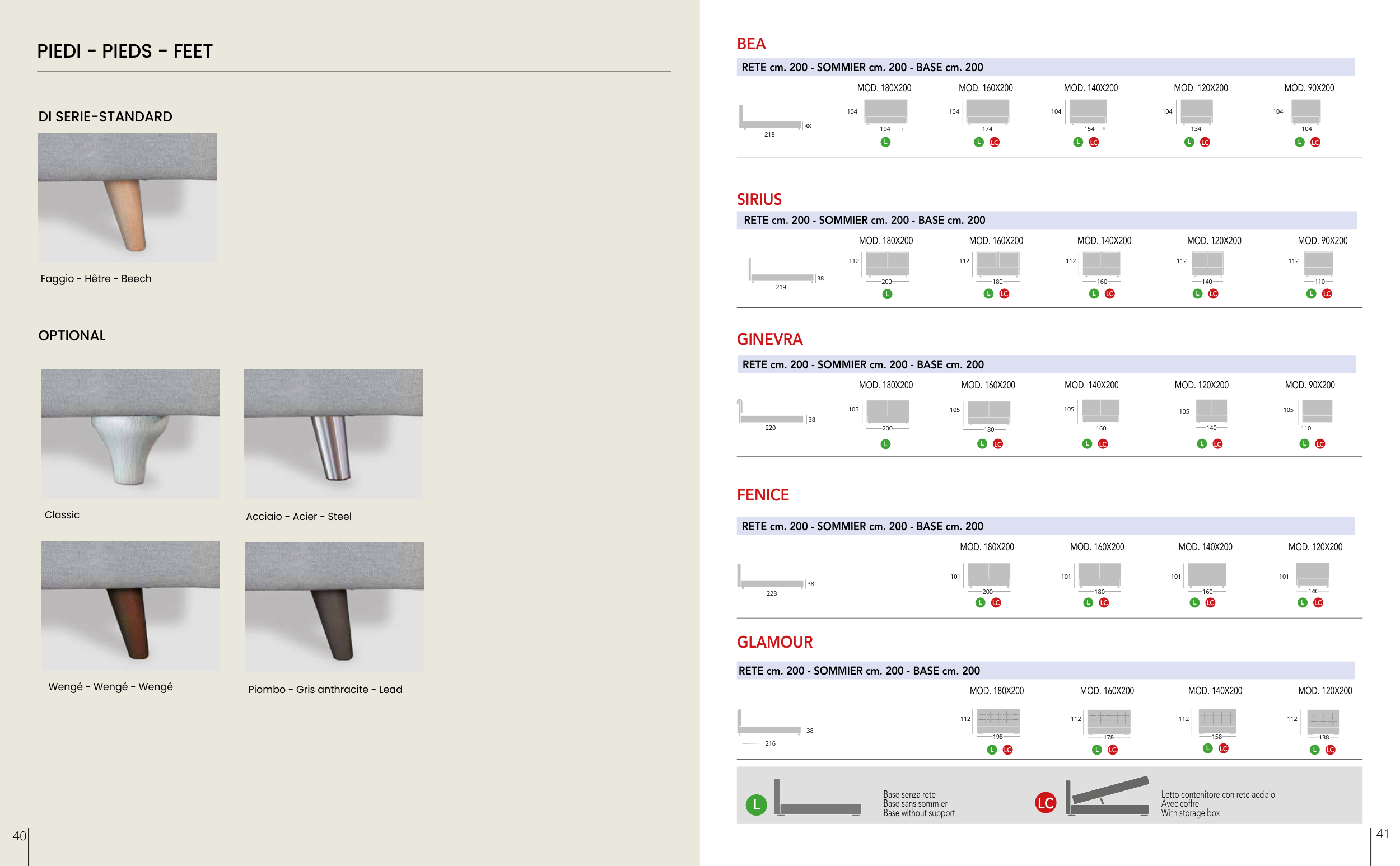 RETE cm. 200 - SOMMIER cm. 200 - BASE cm. 200