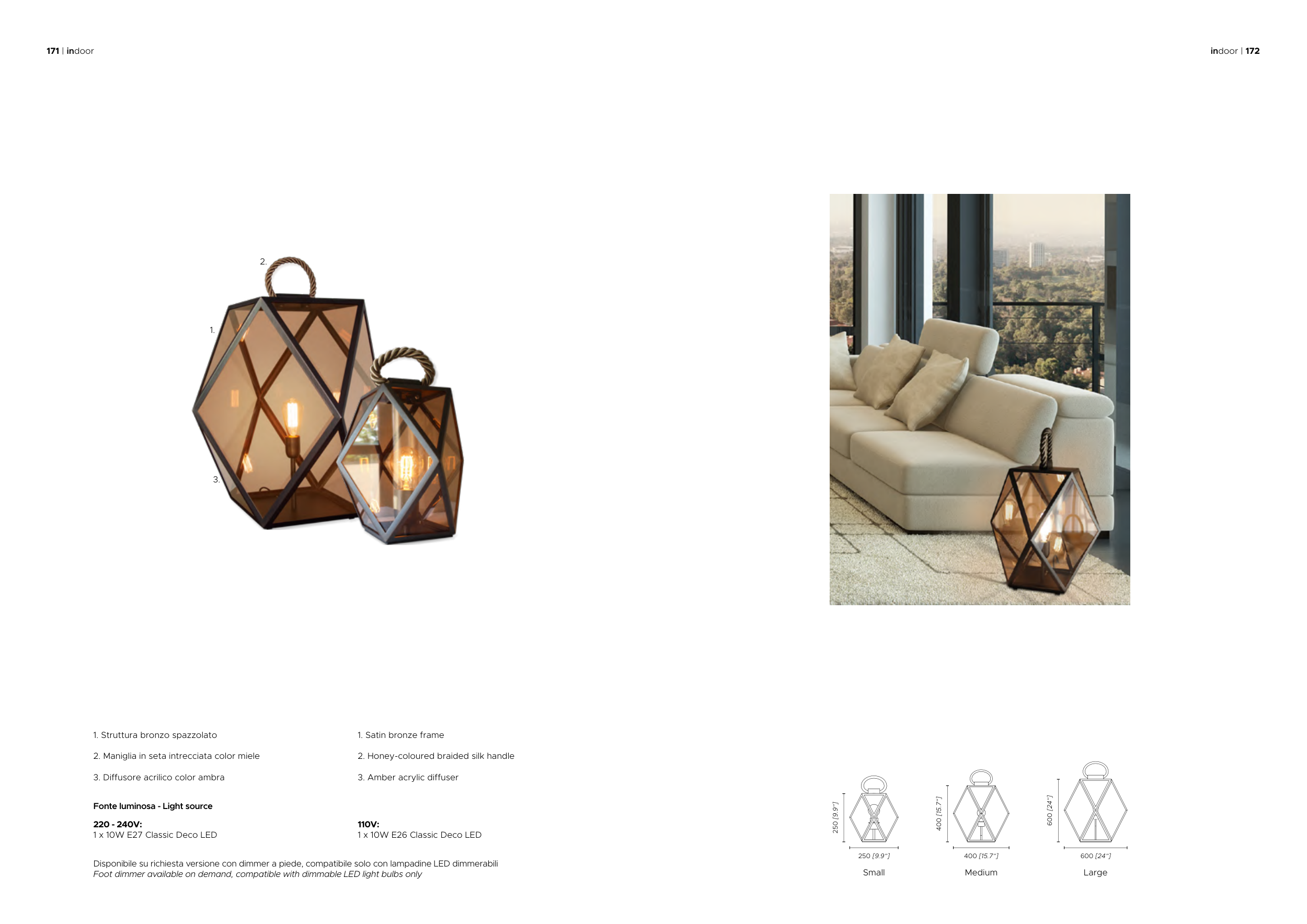 Disponibile su richiesta versione con dimmer a piede, compatibile solo con lampadine LED dimmerabili