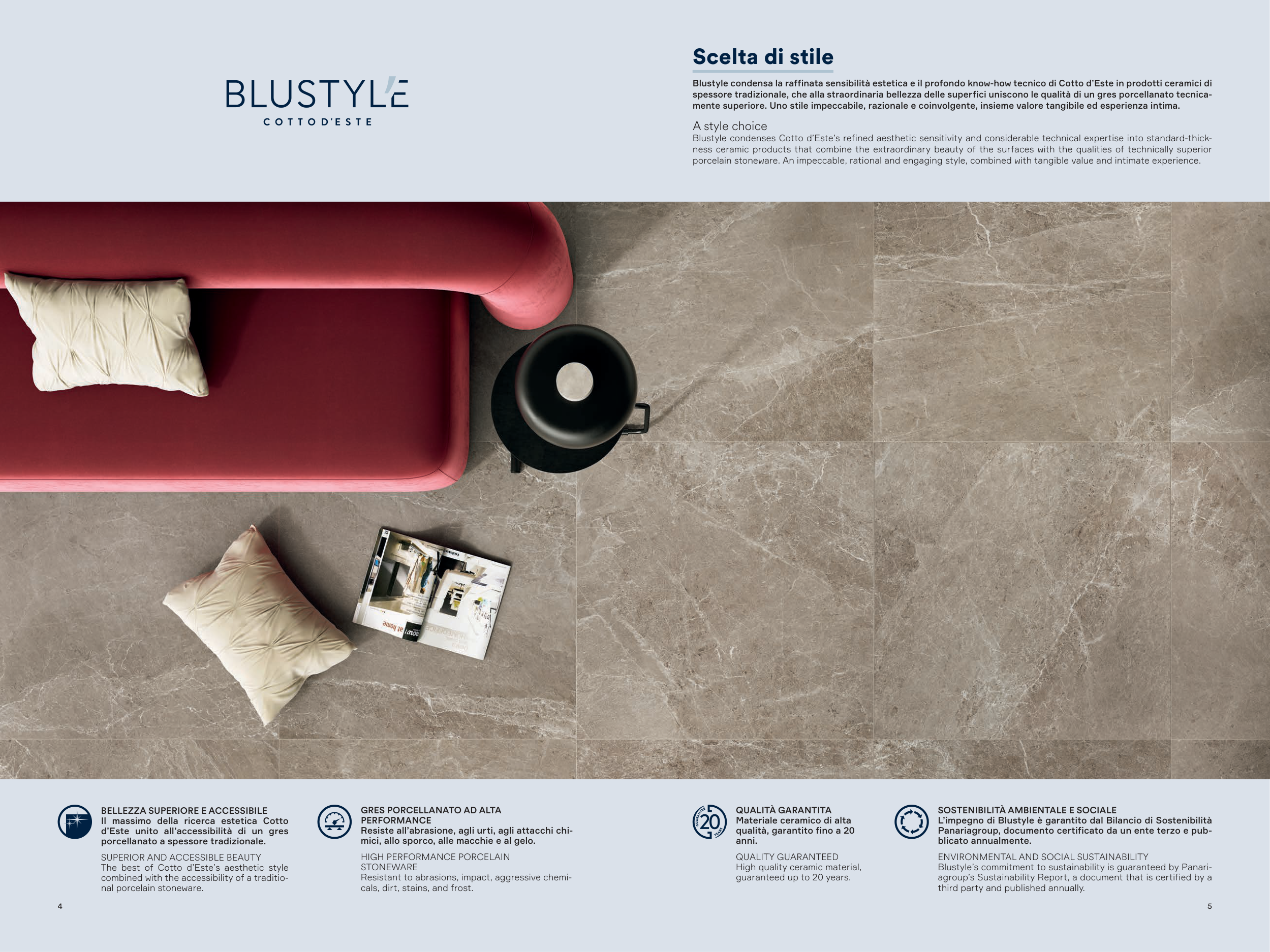 Blustyle condensa la raffinata sensibilità estetica e il profondo know-how tecnico di Cotto d’Este in prodotti ceramici di