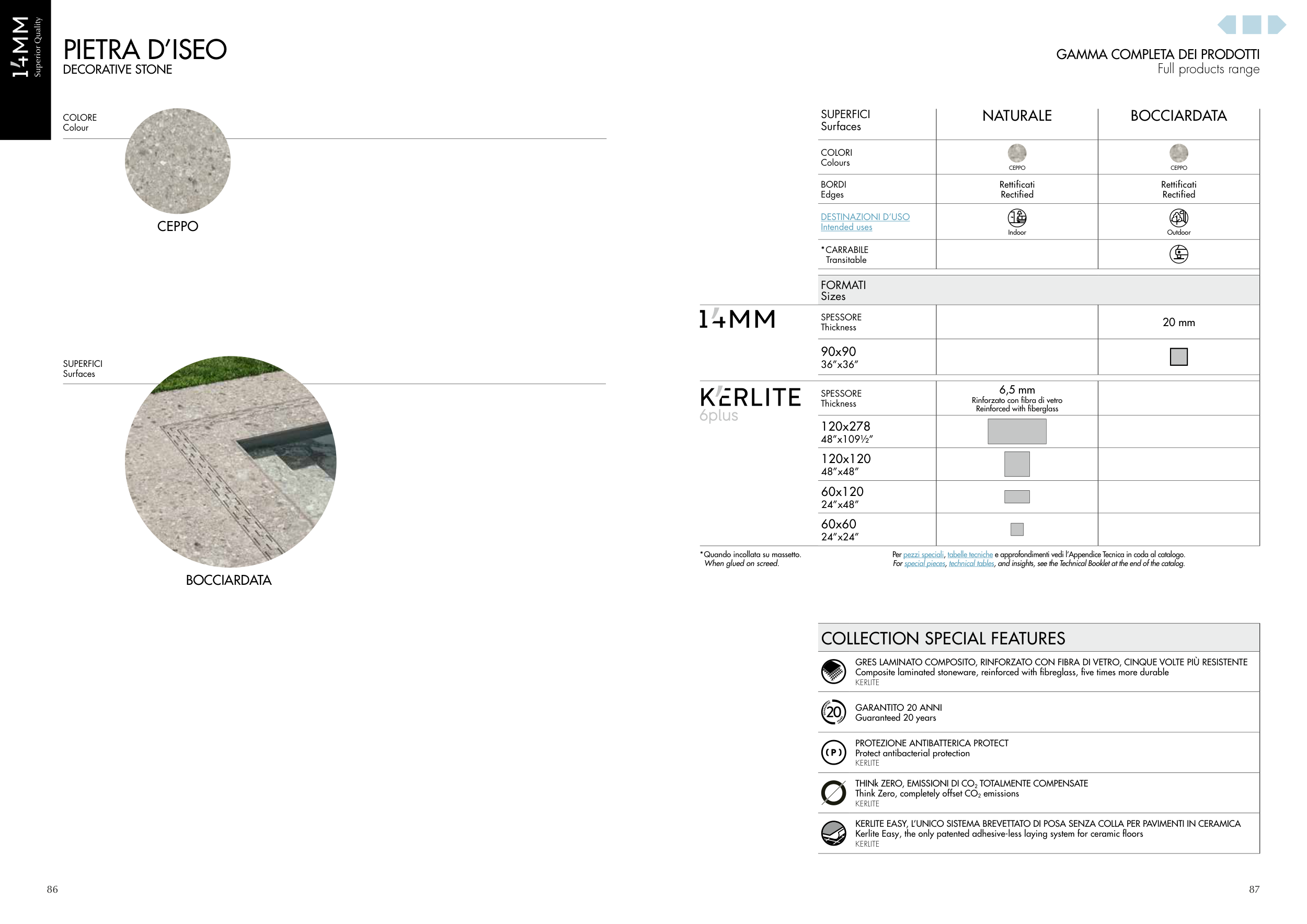 For special pieces, technical tables, and insights, see the Technical Booklet at the end of the catalog.