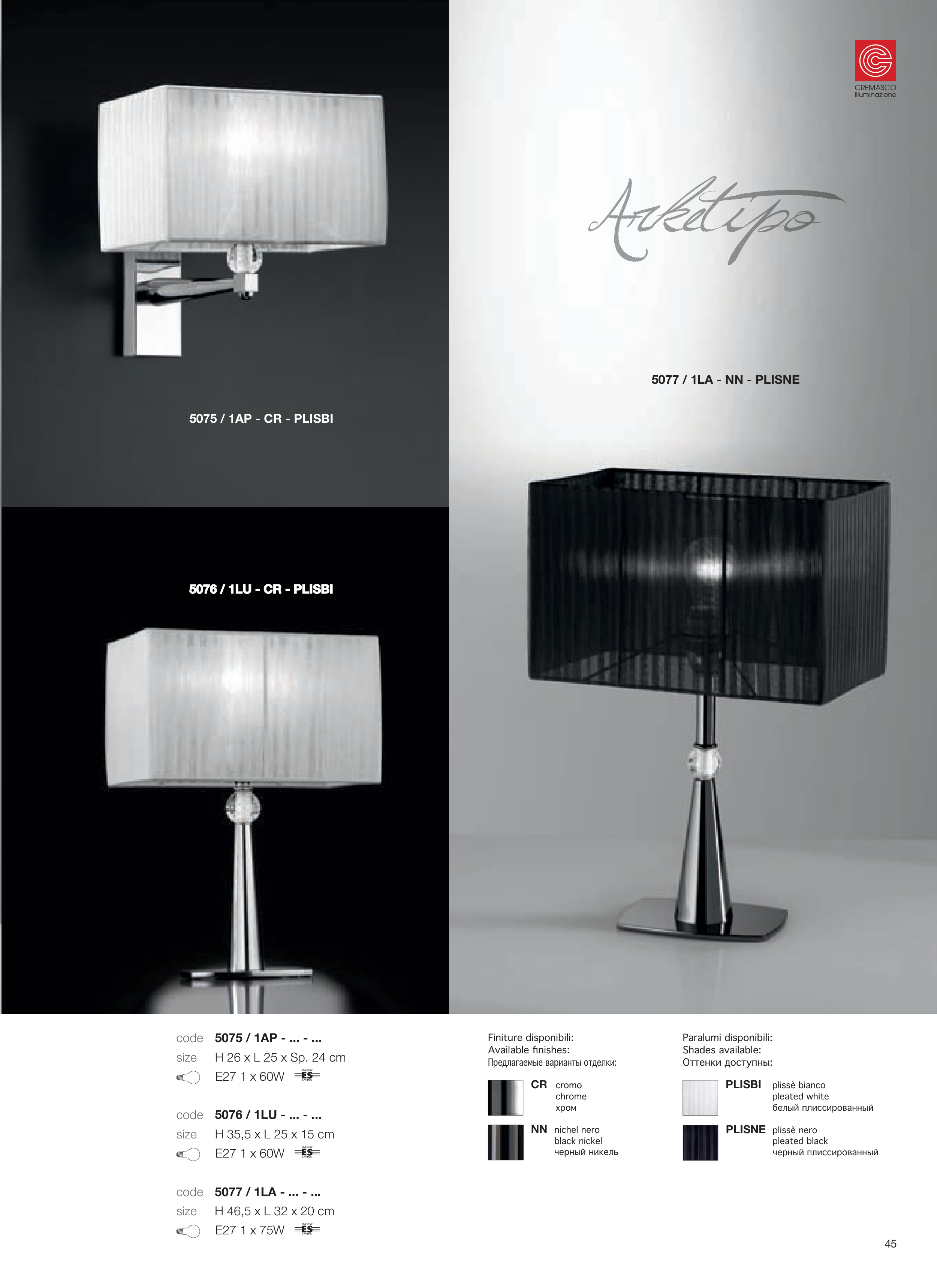 Finiture disponibili:
