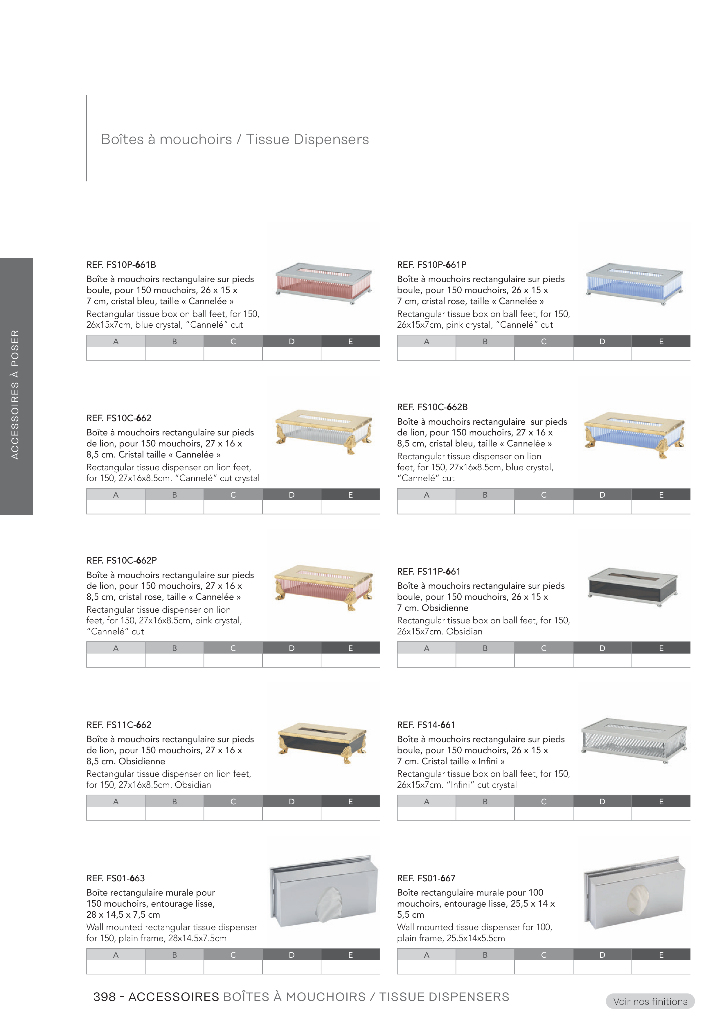 398 - ACCESSOIRES BOÎTES À MOUCHOIRS / TISSUE DISPENSERS