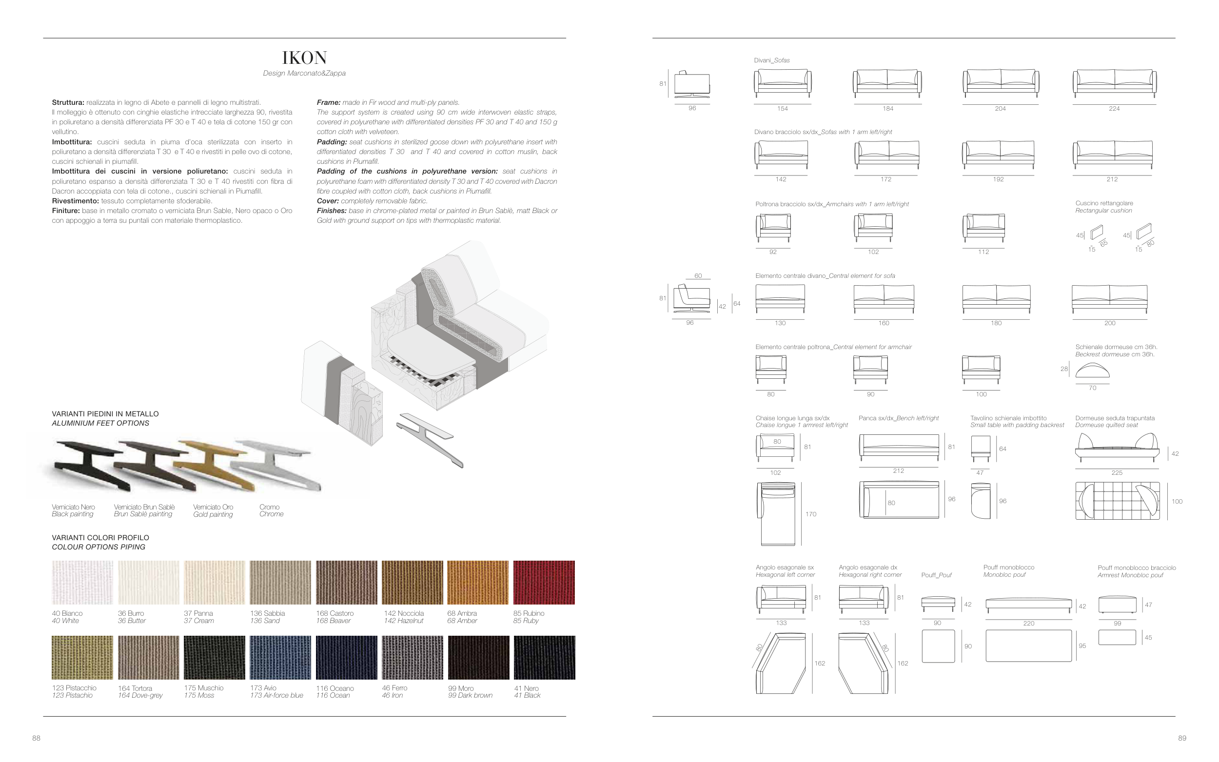 Imbottitura: cuscini seduta in piuma d’oca sterilizzata con inserto in