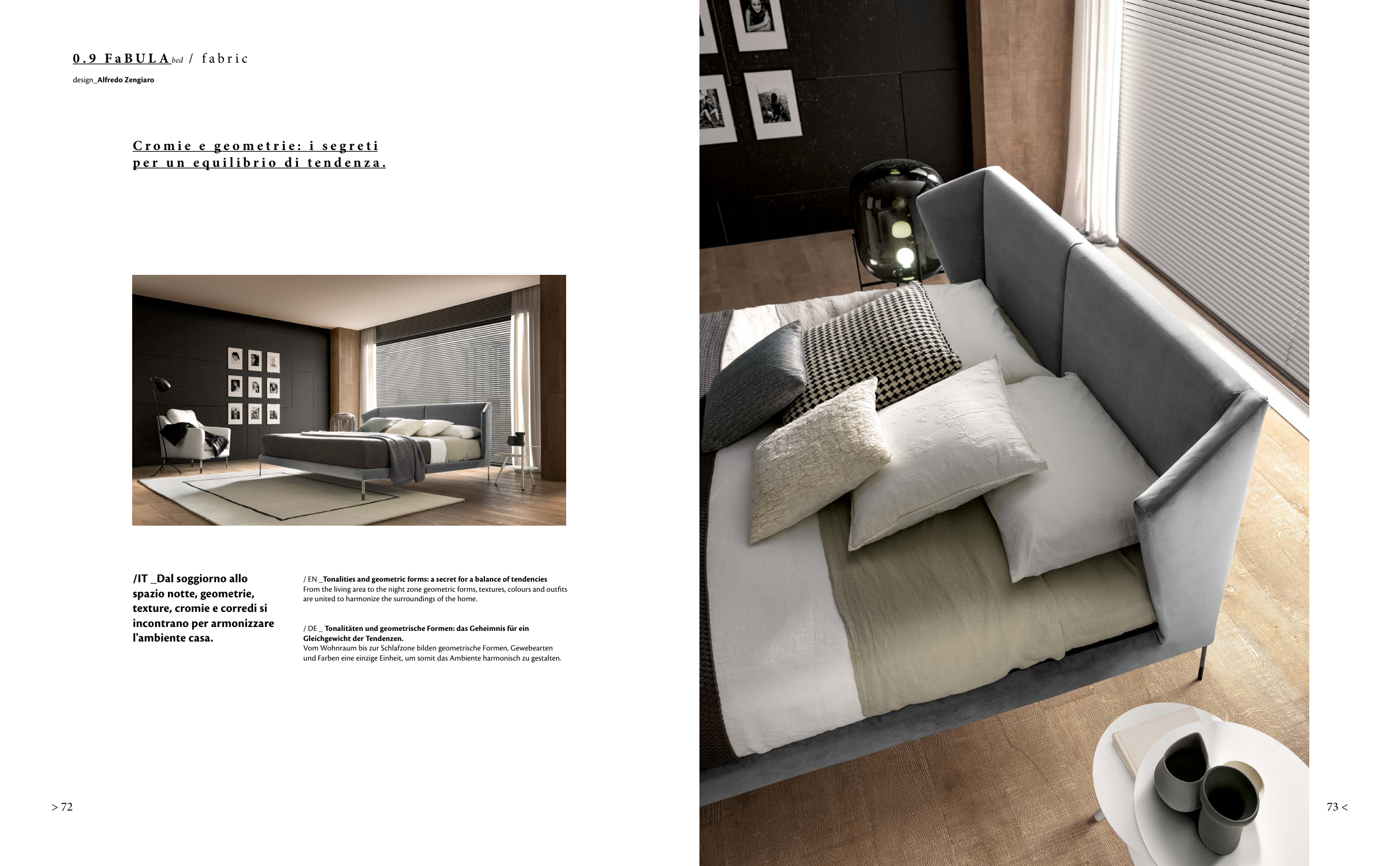 From the living area to the night zone geometric forms, textures, colours and outfits